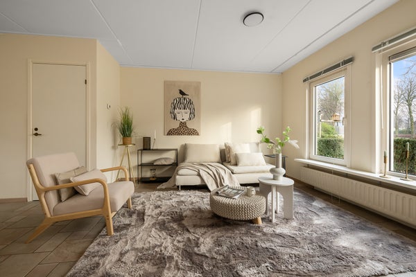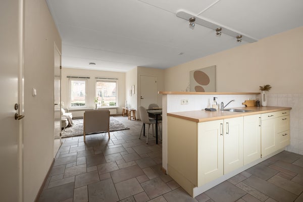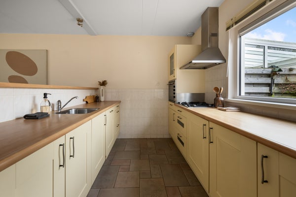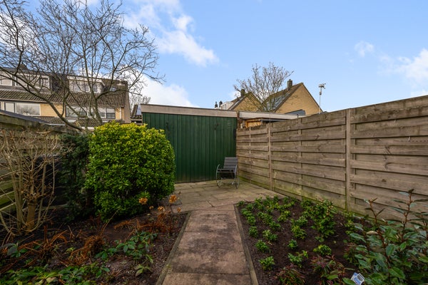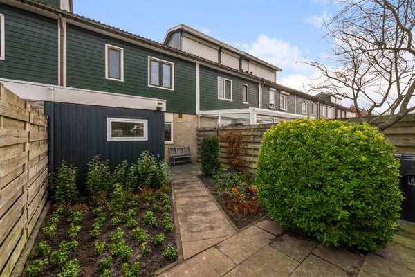 De indeling van de woning includeert een ruime Z-vormige woonkamer van 29 m², een keuken met inbouwapparatuur en toegang tot de bijkeuken. Boven bevinden zich drie slaapkamers en een verzorgde badkamer. De zonnige achtertuin van 59 m² heeft terrassen en bloemenborders. Bijzonderheden zijn onder andere energielabel B en een perceeloppervlak van 130 m².