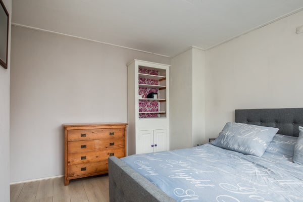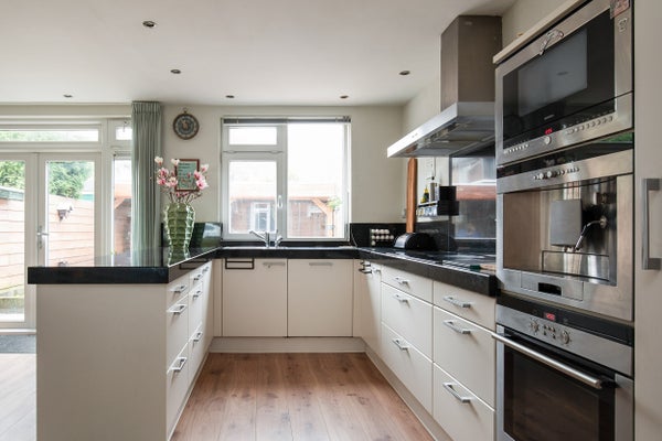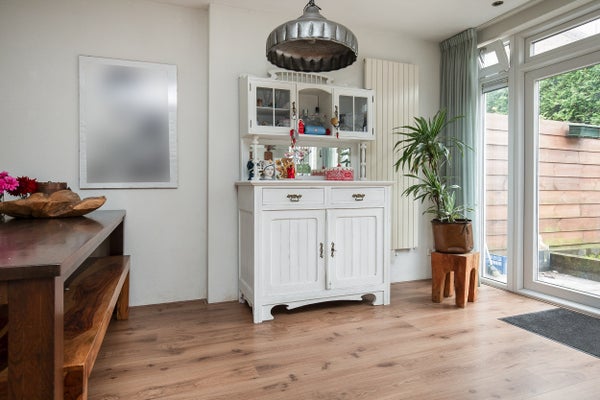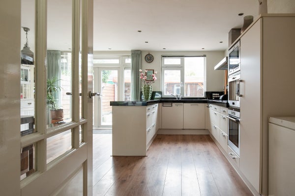 Deze eengezinswoning biedt veel voordelen. De begane grond is 2,5 meter uitgebouwd, wat heeft geresulteerd in een ruime eetkeuken met inbouwapparatuur en een handige nis voor een thuiswerkplek. Op de eerste verdieping zijn drie slaapkamers en een nette badkamer met vloerverwarming en een tweede toilet. De zolder, bereikbaar via een vaste trap, beschikt over een grote slaapkamer door een dakkapel en biedt nog ruimte voor opslag.