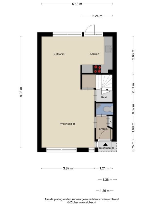 - De tussenwoning heeft een woonoppervlakte van 100 m² en beschikt over 4 kamers;