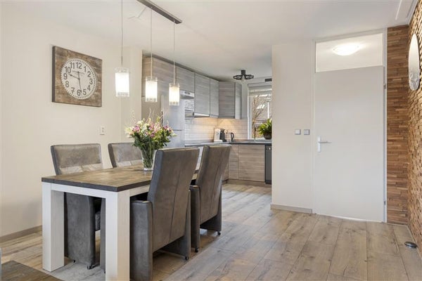 Stap binnen en laat je verrassen door de fijne sfeer van deze woning. De woonkamer is een heerlijke lichte ruimte, grotendeels te danken aan de grote schuifpui aan de achterzijde. Hier haal je niet alleen een overvloed aan daglicht naar binnen, maar heb je ook prachtig zicht op de zonnige tuin. Schuif de deur open en loop direct naar buiten. Een zwoele zomeravond? Organiseer een barbecue met vrienden en geniet tot in de late uurtjes van de zon, dat maakt het leven hier nét even wat mooier.