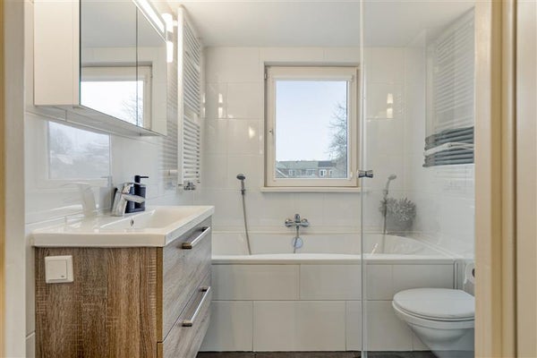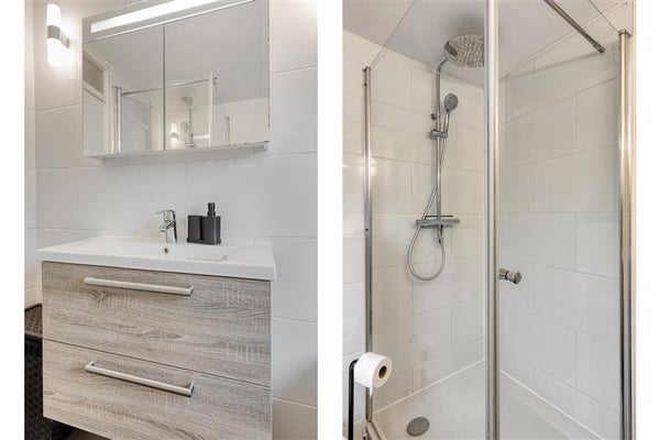 De badkamer is in 2019 vernieuwd en dat zie je. Strakke tegels, modern sanitair en een inloopdouche zorgen voor een luxe uitstraling en optimaal gebruiksgemak. Hier start en eindig je je dag in alle rust.
