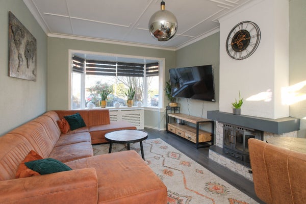 Stap binnen in deze charmante jaren 30 TWEE ONDER EEN KAP woning met originele stijl kenmerken zoals glas-in lood ramen, granito vloer in de hal, hoge plafonds, erker en paneeldeuren.