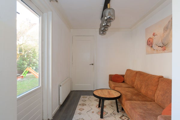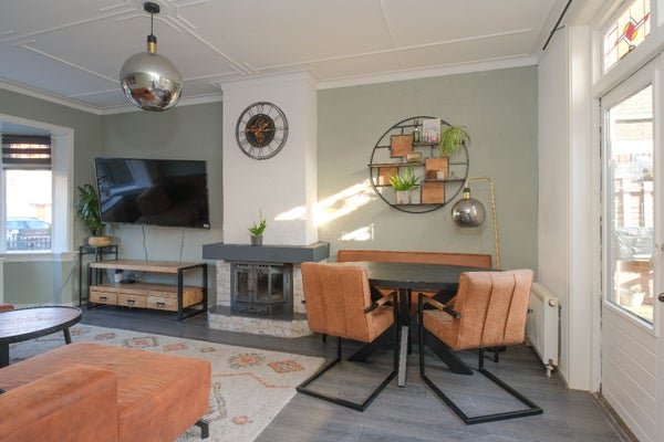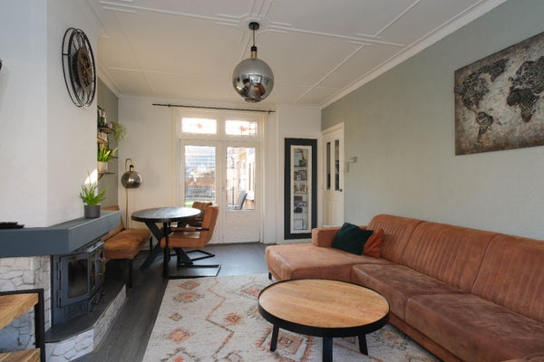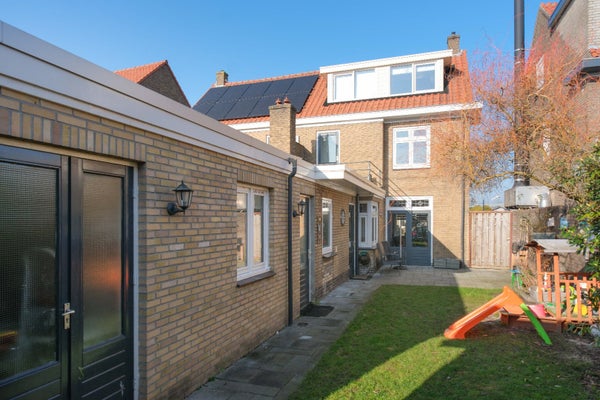 Een heerlijk ruim gezinshuis met een vrije diepe zonnige achtertuin op het zuiden met een achterom d.m.v. afgesloten poort (nieuw) . Mooie authentieke elementen in de woning waaronder de glas-in-loodramen bij binnenkomst, hoge plafonds, paneeldeuren, een leuke erker met glas-in-lood ramen en tuindeuren naar het terras. Mooie luxe badkamer, nette keuken met inbouwapparatuur en boven 3 slaapkamers.
