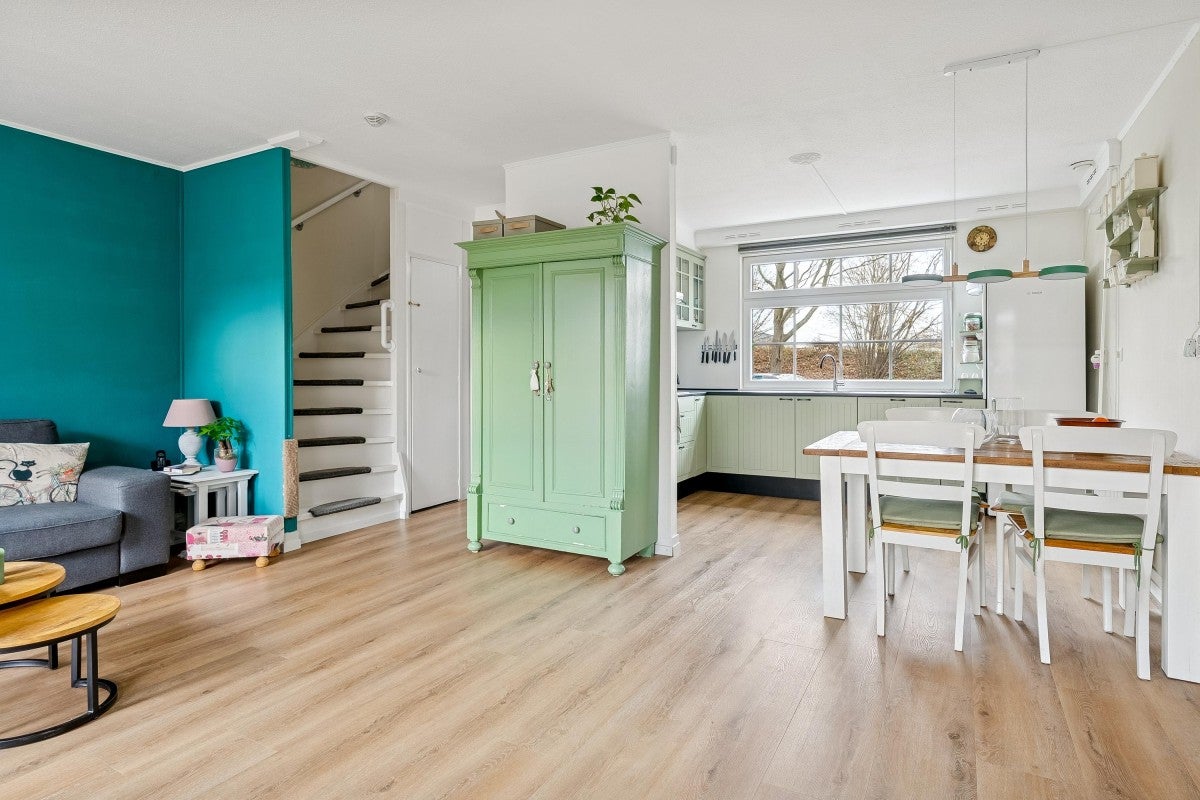 In het hart van Almere Stad vind je een gezellige tussenwoning die veel te bieden heeft. Deze eengezinswoning met een woonoppervlakte van 102 m² beschikt over vier slaapkamers en een zonnige tuin op het zuiden. Gelegen in een rustige, kindvriendelijke wijk, ben je snel in het centrum met al zijn voorzieningen. De indeling is praktisch: de ruime woonkamer aan de achterzijde biedt uitzicht op de tuin en heeft veel natuurlijk licht door grote ramen. Een open keuken aan de voorzijde is functioneel ingericht. De begane grond heeft een nieuwe PVC-vloer. Op de eerste verdieping zijn drie slaapkamers en een badkamer met douche en toilet. De tweede verdieping biedt een vierde slaapkamer en aansluitingen voor wasmachine en droger. De tuin heeft een houten berging en een achterom.