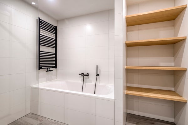 On the first floor, you'll find two large bedrooms. The master bedroom with a walk-in closet was originally combined from two rooms. The luxurious bathroom is neat and spacious. A second, modern toilet is located on the landing.