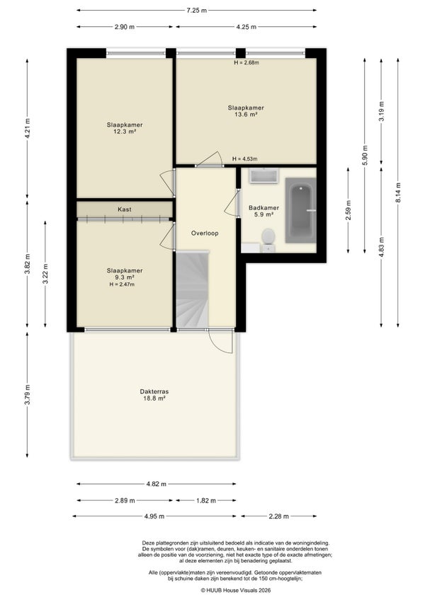 - De tussenwoning heeft een woonoppervlakte van 154 m² en beschikt over 5 kamers, waarvan 4 slaapkamers;