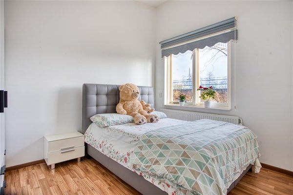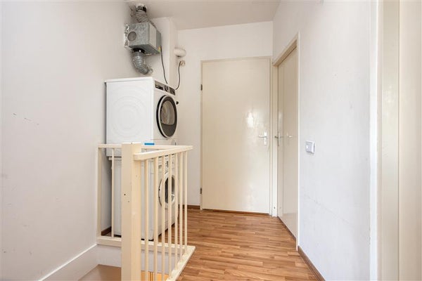 De tussenhal op de begane grond herbergt bovendien een separaat toilet (in 2024 vernieuwd) en de trapopgang naar de eerste verdieping. Hier boven vind je alles wat je verwacht van een gezinswoning: drie ruime slaapkamers, een overloop waar slim gebruik is gemaakt van lichtinval dankzij de lichtkoepel en een praktische opstelling met de wasmachine-aansluiting en de unit voor mechanische ventilatie. Elke slaapkamer biedt voldoende ruimte voor een bed, kast en eventueel een bureau, ideaal voor gezinnen met opgroeiende kinderen.