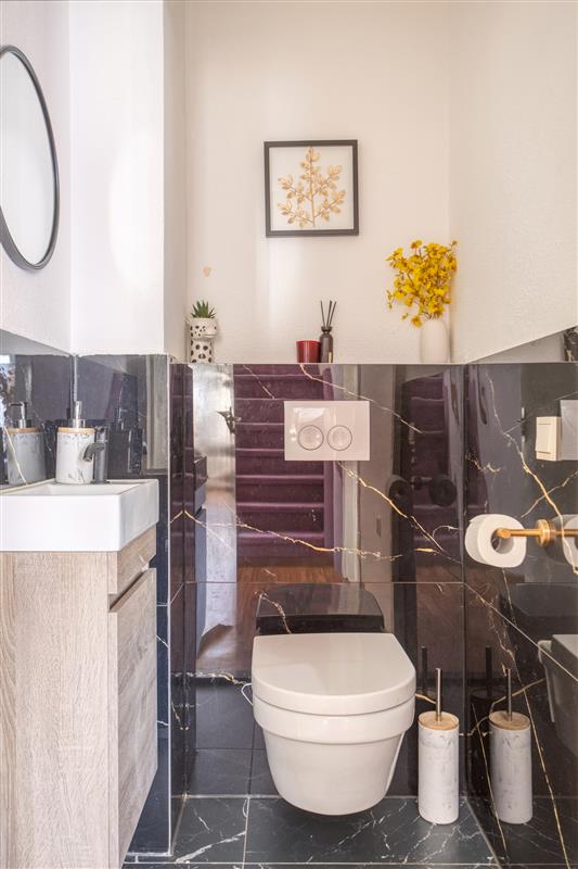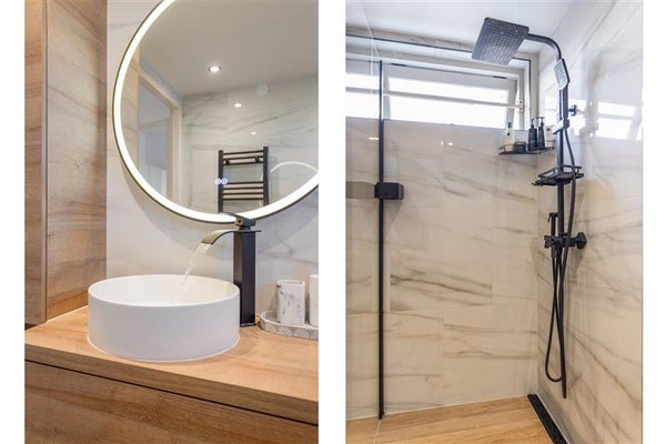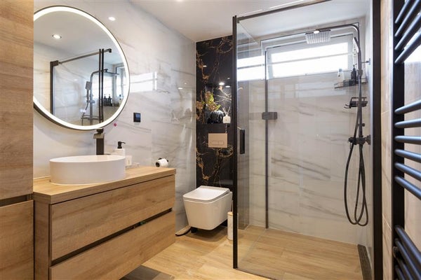 De badkamer, eveneens vernieuwd in 2024, is een lust voor het oog. Denk aan een moderne uitstraling met frisse kleuren, een ruime douchecabine, een strak wastafelmeubel, designradiator en een vrijhangend toilet. Dit is dé plek waar je geniet van je eigen wellnesstijd na een lange dag.