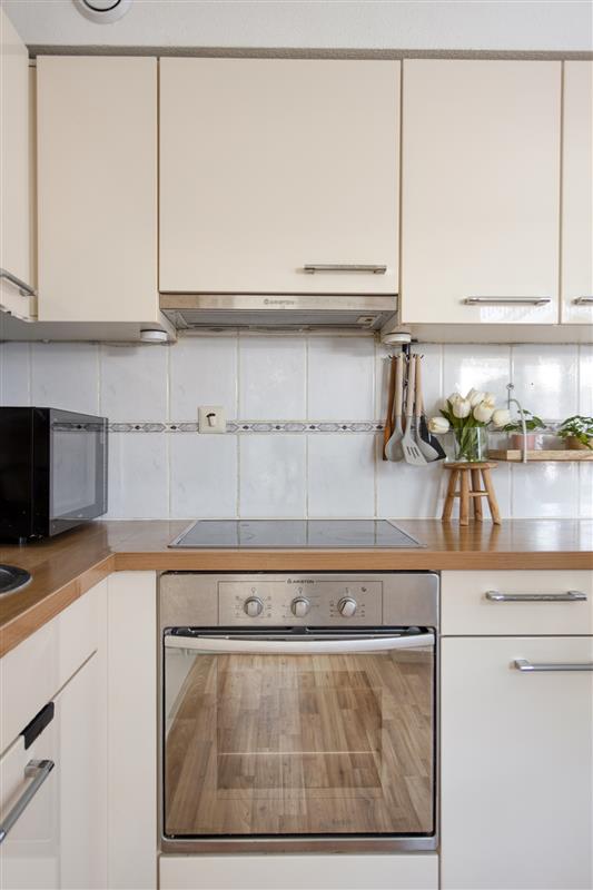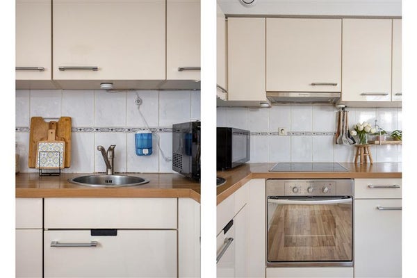 De open keuken straalt moderniteit en gemak uit. Voorzien van alle inbouwapparatuur die handig is in het dagelijks leven – van een inductiekookplaat en vaatwasser tot een ruime koelkast en vriezer wordt koken hier een waar genoegen. Of je nu een snelle doordeweekse maaltijd klaarmaakt of uitgebreid wilt kokkerellen in het weekend, alles wat je nodig hebt is binnen handbereik.