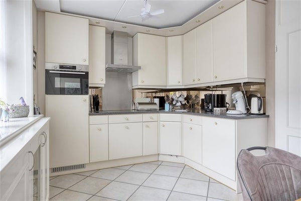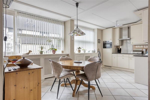 De open keuken is overzichtelijk en ingericht met kwalitatieve inbouwapparatuur, zoals een vaatwasser, koelkast, combimagnetron, afzuigkap en inductiekookplaat. Of je nu een snelle maaltijd bereidt of uitgebreid kookt voor familie of vrienden – de keuken biedt alles wat je nodig hebt. De eethoek grenst direct aan de keuken, waardoor je gezellig bij elkaar kunt zitten tijdens het koken.