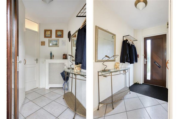Deze woning is ideaal ingedeeld om zowel praktisch als comfortabel te kunnen wonen. De woning ligt in een rustige straat in de groene Bloemenbuurt, op loopafstand van het Meridiaanpark. Binnen wacht je een royale entreehal met plavuizen vloer, voorzien van vloerverwarming, die meteen een praktisch en nette indruk achterlaat. De hal biedt toegang tot een vaste kast, meterkast en de woonkamer.