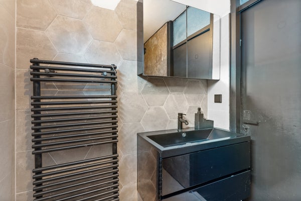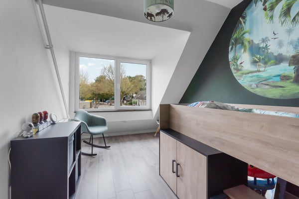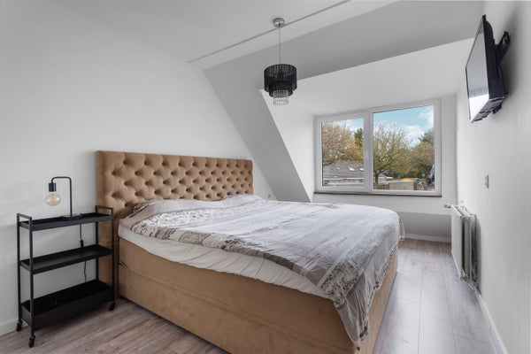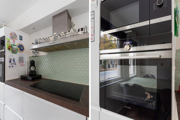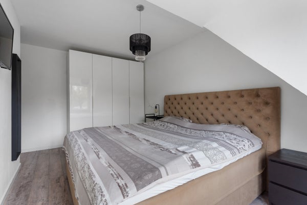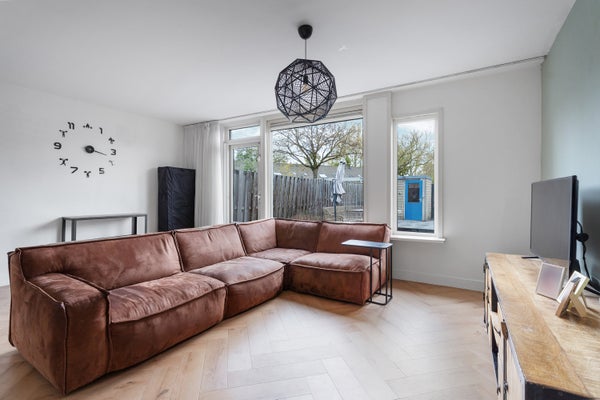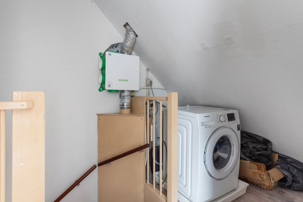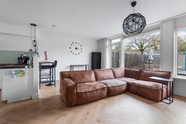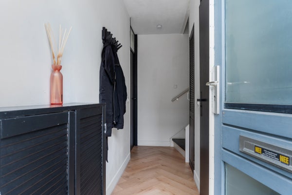 De woning beschikt over een hal met toegang tot de woonkamer, die tuingericht is en veel licht vangt. De moderne L-vormige keuken heeft diverse inbouwapparatuur. Op de eerste verdieping zijn drie slaapkamers en een badkamer met inloopdouche. De tweede verdieping biedt een voorzolder met mechanische ventilatie en een vierde slaapkamer.