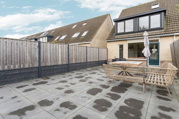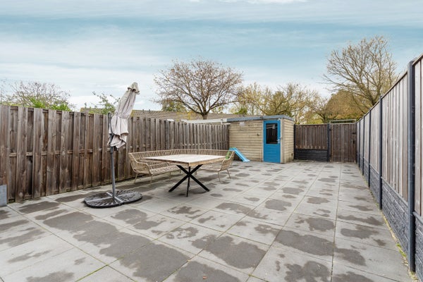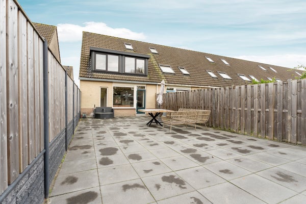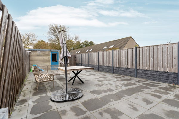 De achtertuin is onderhoudsvrij, met berging en achterom, en de woning heeft energielabel A.