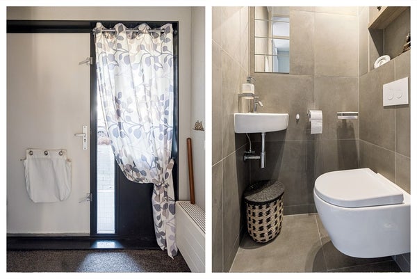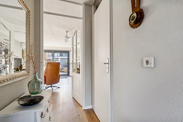 Bij binnenkomst in de hal heb je toegang tot het toilet, de meterkast en de woonkamer.
