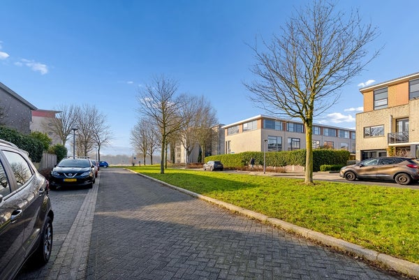 Aan de achterkant van de woning is een elektrisch zonnescherm aanwezig, deze zorgt dat de woning in de warme zomermaanden heerlijk koel blijft.