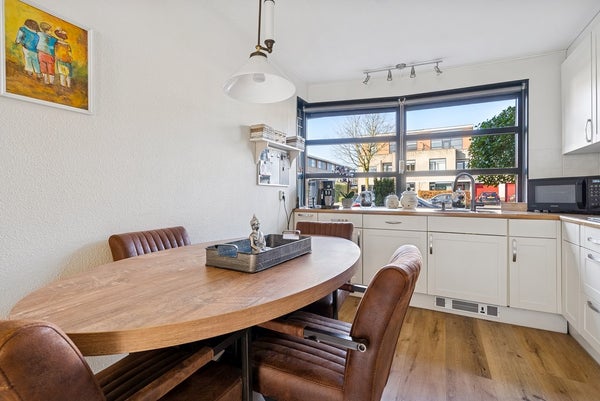 Aan de voorkant van de woning is de keuken gelegen. De keuken verkeert in goede staat en is voorzien van diverse inbouwapparatuur. De volgende inbouwapparatuur is aanwezig: koel-/vriescombinatie, grote oven, inductie kookplaat, afzuigkap en een vaatwasser. Dit alles maakt het een perfecte plek om heerlijk te kokkerellen.