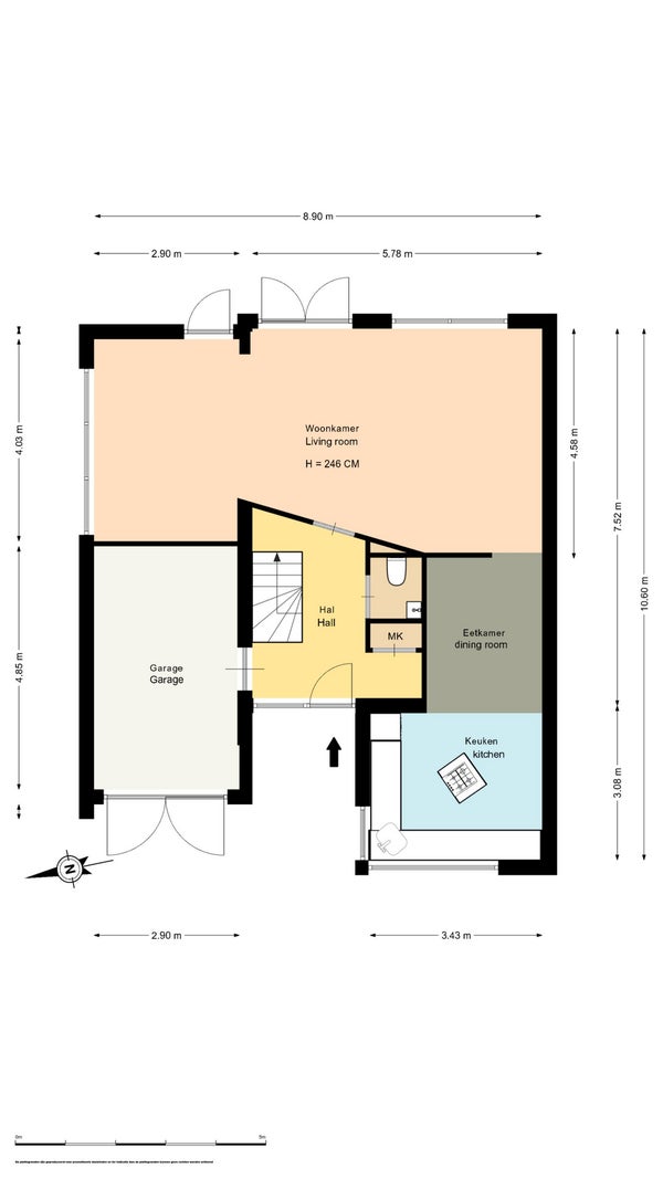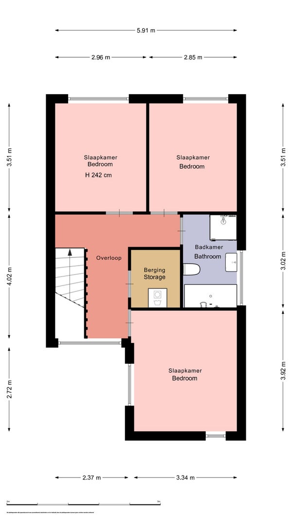 - De tussenwoning heeft een woonoppervlakte van 123 m² en beschikt over 4 kamers, waarvan 3 slaapkamers;
