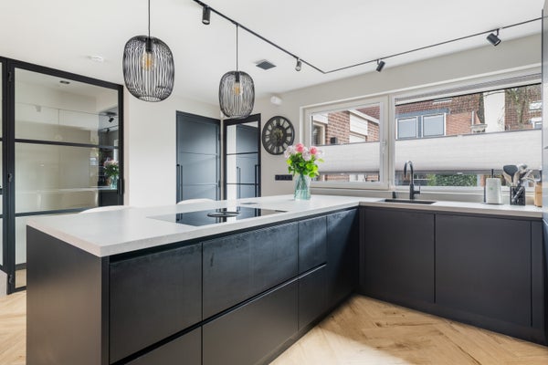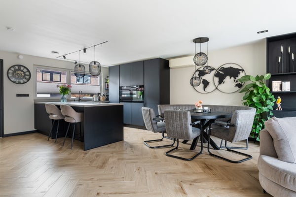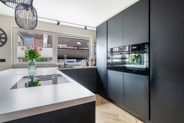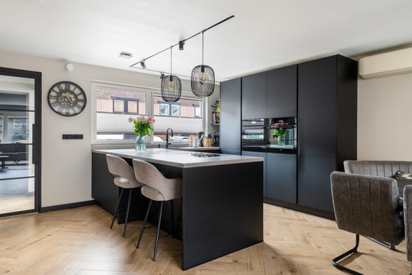 De open keuken vormt het hart van de woning en is uitgevoerd met een stijlvol kookeiland. De keuken is uitgerust met uitsluitend hoogwaardige AEG-apparatuur, waaronder een Bora kookplaat met geïntegreerd afzuigsysteem, een combi-magnetron en een vaatwasser. Ook is er een quooker kraan met warm en waterkoeler aanwezig. Een keuken die niet alleen mooi is, maar ook praktisch en compleet.