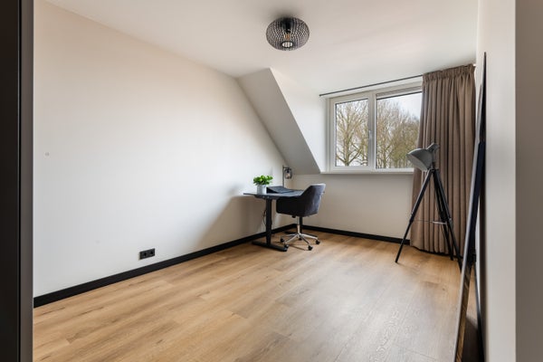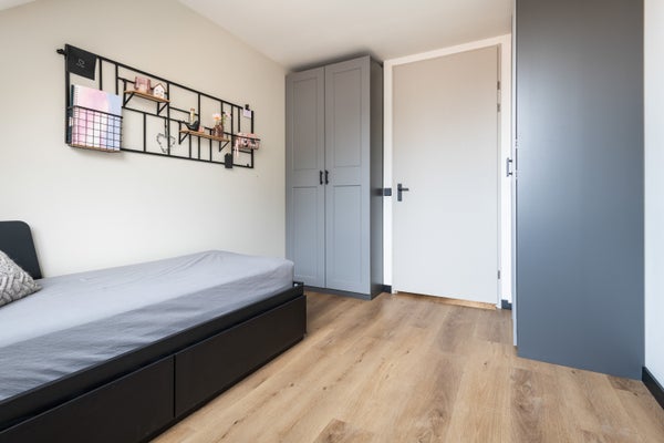 De eerste verdieping is net zo grondig aangepakt als de rest van de woning. Hier bevinden zich drie slaapkamers, allemaal keurig afgewerkt en voorzien van een prettige lichtinval. De gehele verdieping is uitgerust met vloerverwarming, eveneens aangesloten op de warmtepomp.
