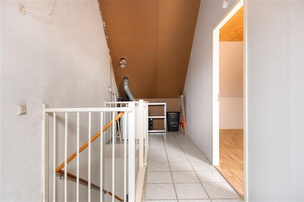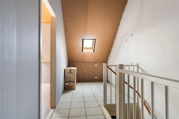 De vaste trap leidt je naar de ruime zolderverdieping. Hier vind je een praktische voorzolder die dienstdoet als opstellingsruimte voor de wasmachine en droger en extra bergruimte biedt. Ook bevindt zich op deze verdieping een royale slaapkamer met een dakraam, zodat je volop geniet van natuurlijk licht.