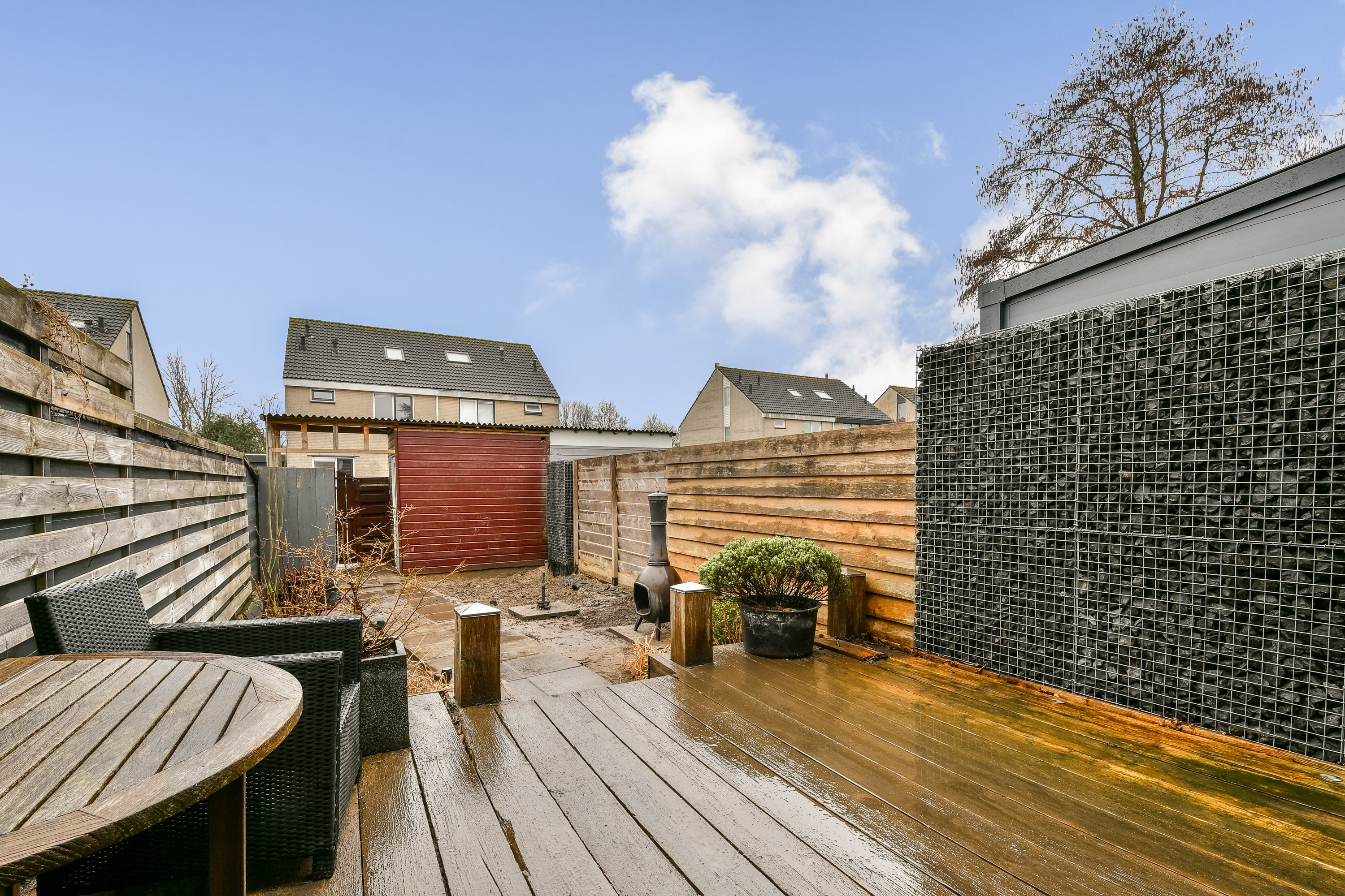 Deze instapklare en recent gerenoveerde tussenwoning (1989, 91m²) in de Bloemenbuurt biedt twee slaapkamers, een moderne keuken en een diepe, zonnige achtertuin op het zuidoosten. Bij binnenkomst wordt u verwelkomd door een verzorgde hal met een moderne toiletruimte. De open keuken, gerealiseerd in 2020, is ingericht met AEG-inbouwapparatuur en profiteert van uitstekende lichtinval dankzij veiligheidsglas in de verdieping. De woonkamer voelt licht en ruim aan dankzij de schuifpui naar de achtertuin. Op de verdieping zijn twee royale slaapkamers en een nette badkamer met inloopdouche. De goed onderhouden achtertuin is een ideale plek voor ontspanning. Gelegen in een kindvriendelijke buurt nabij winkelcentra en scholen, is dit een perfecte gezinswoning.