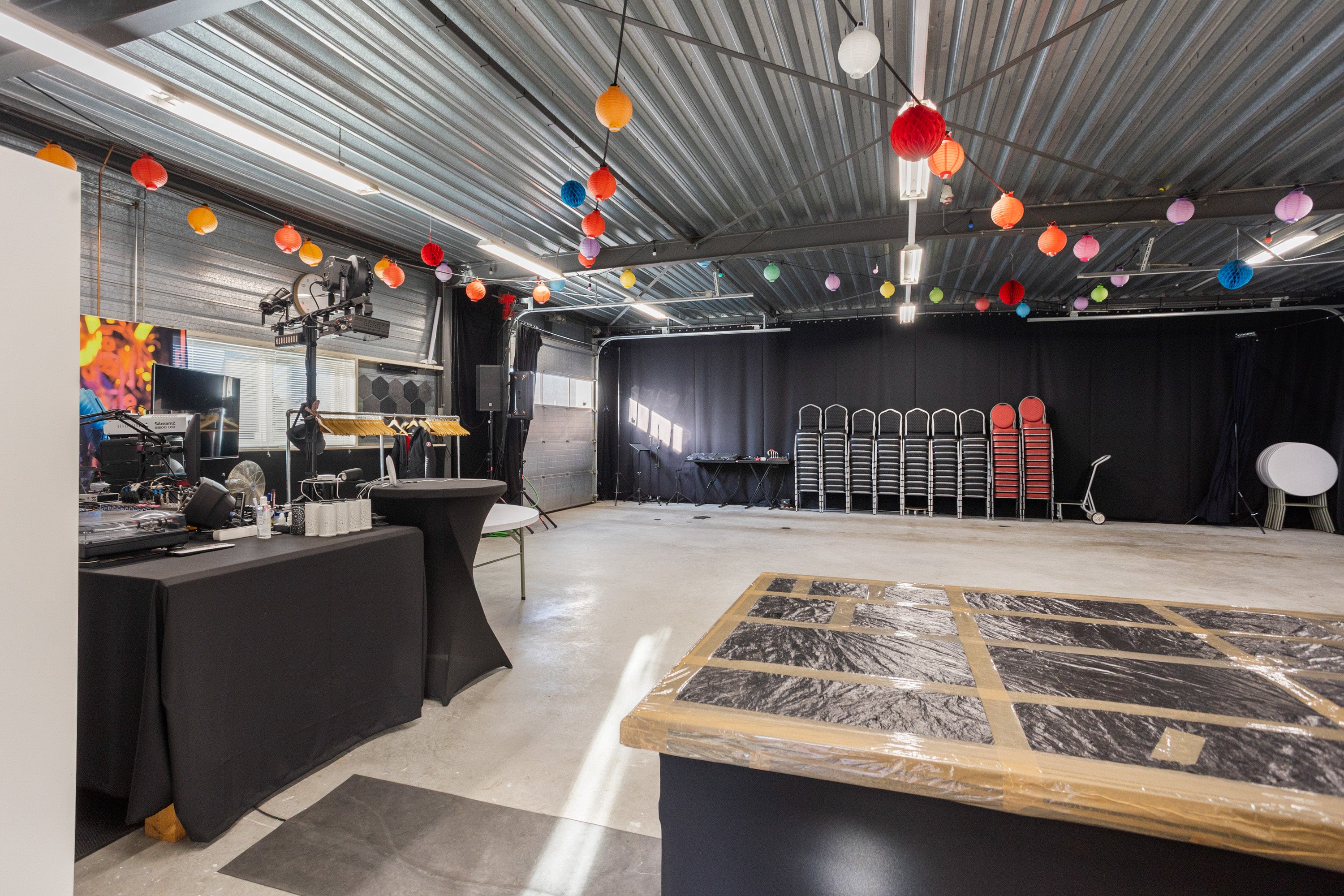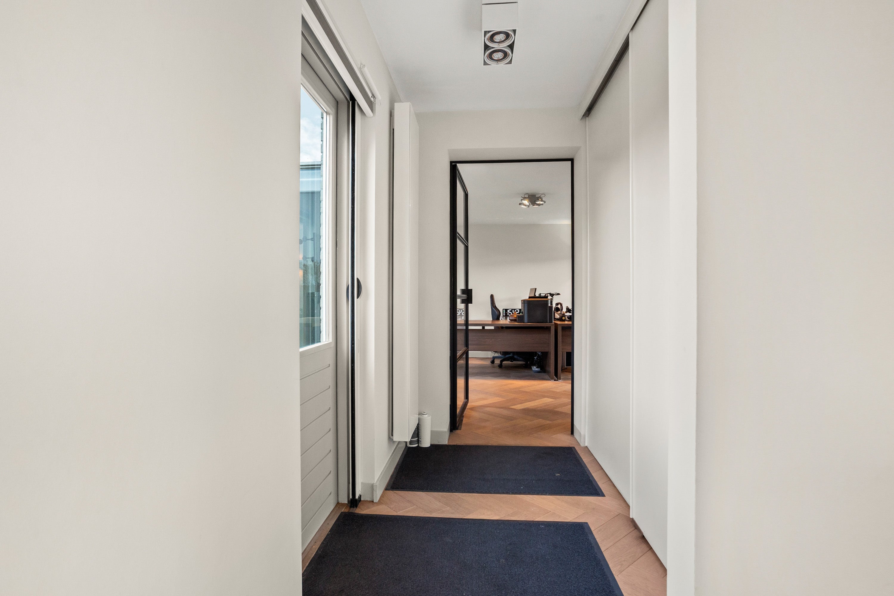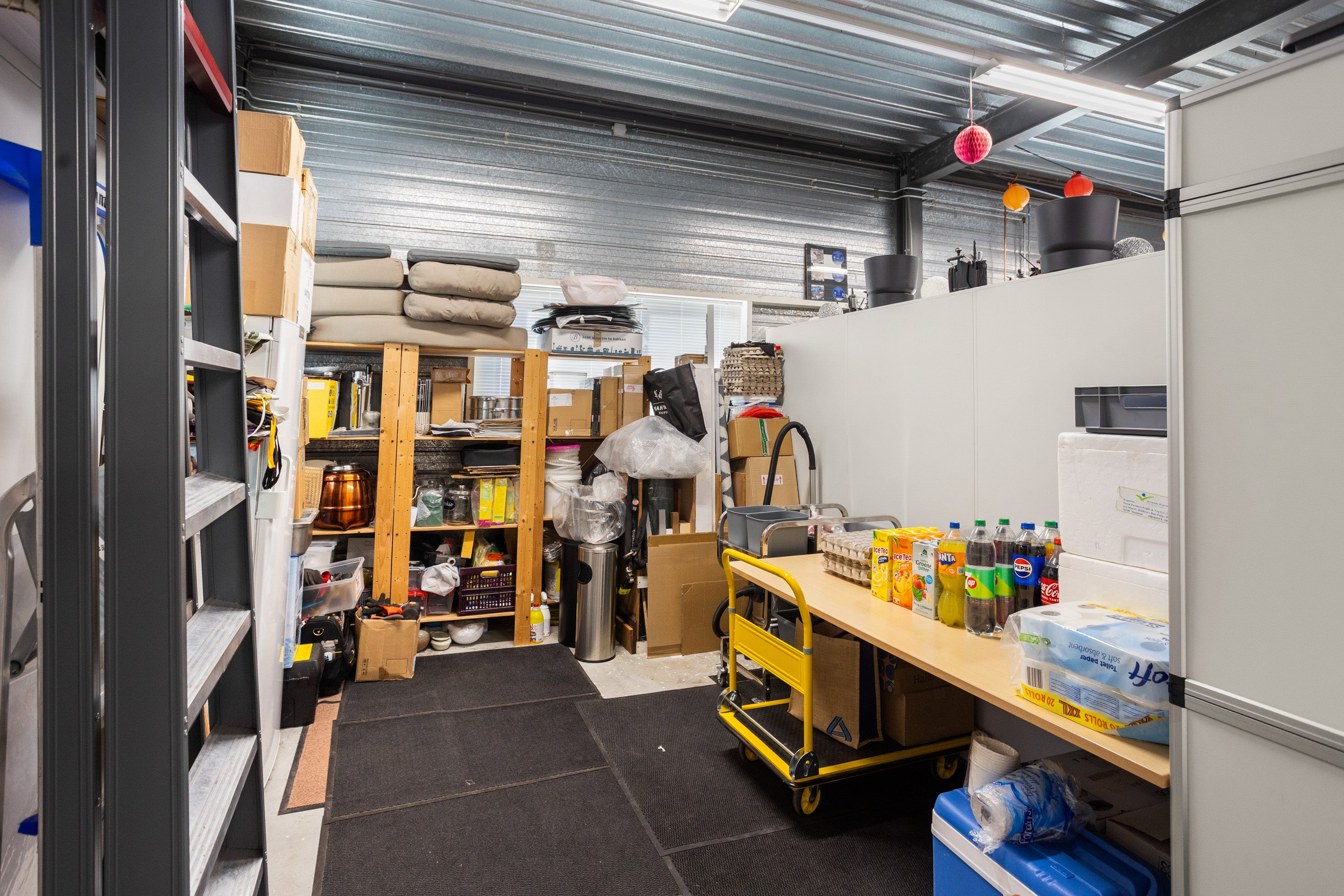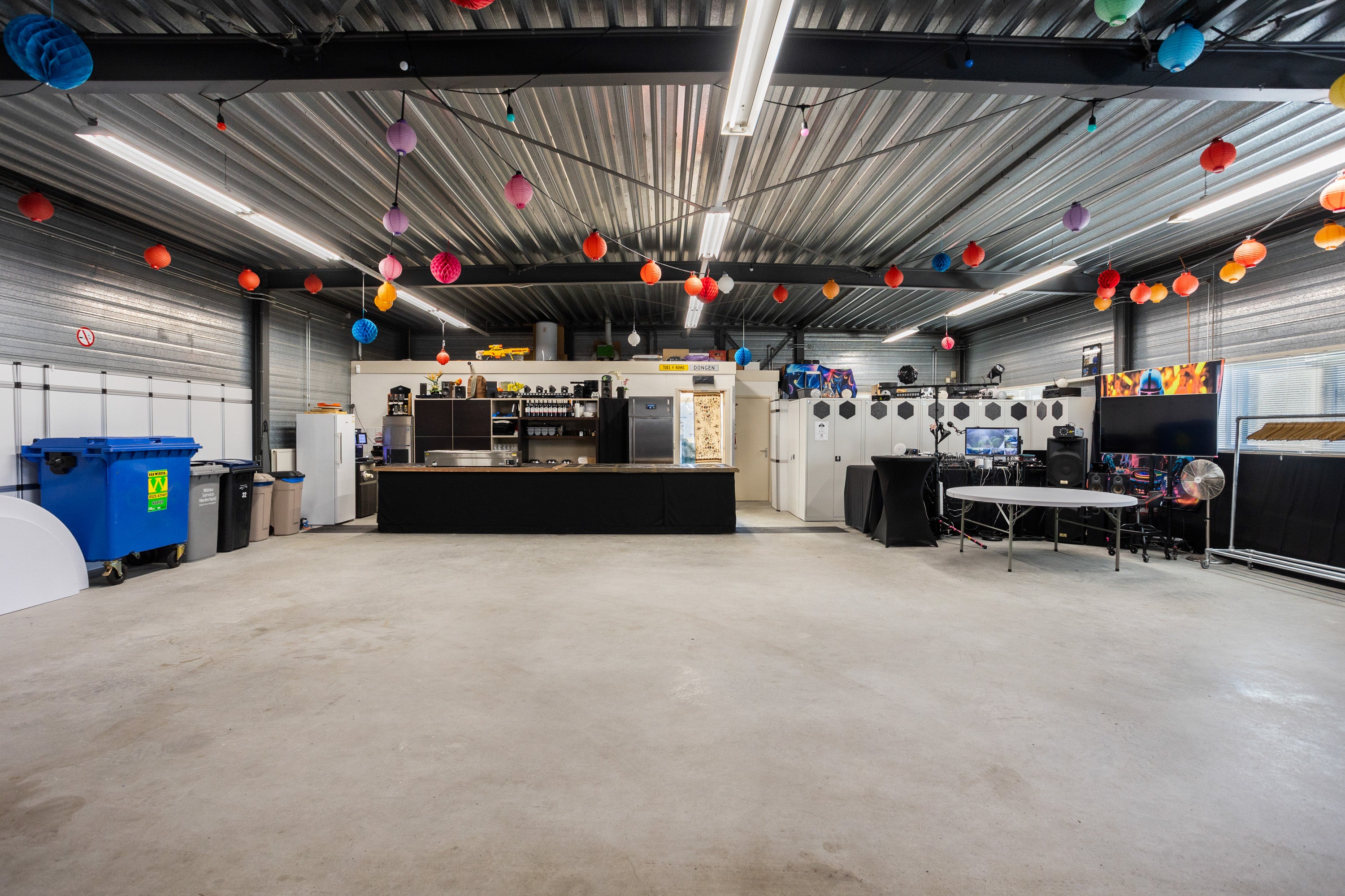 Op de verdieping zijn er vier slaapkamers, waaronder een master suite met eigen badkamer. Het bedrijfspand bevat een grote open ruimte en professionele voorzieningen. De locatie is goed bereikbaar via de A6, A27 en A1.