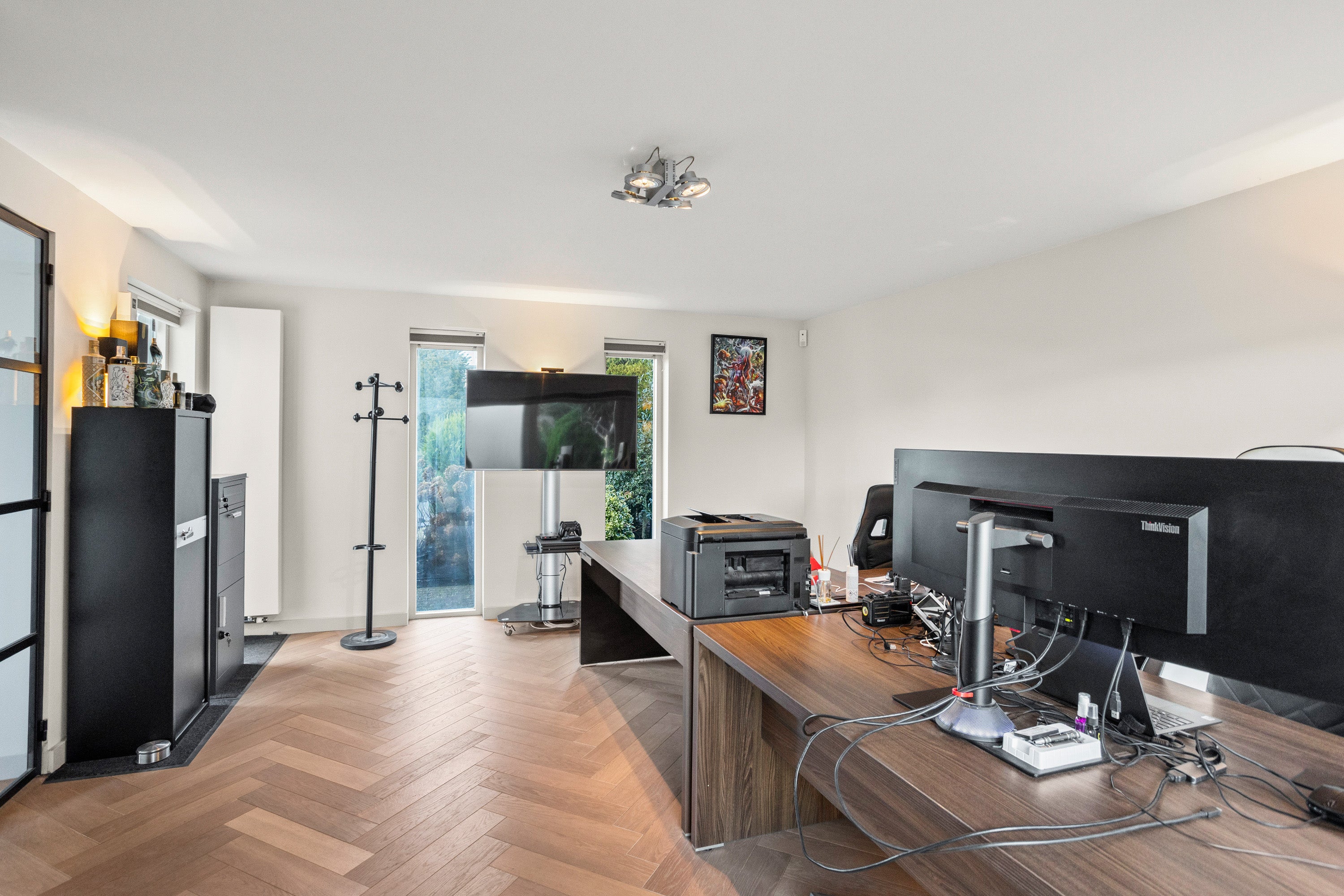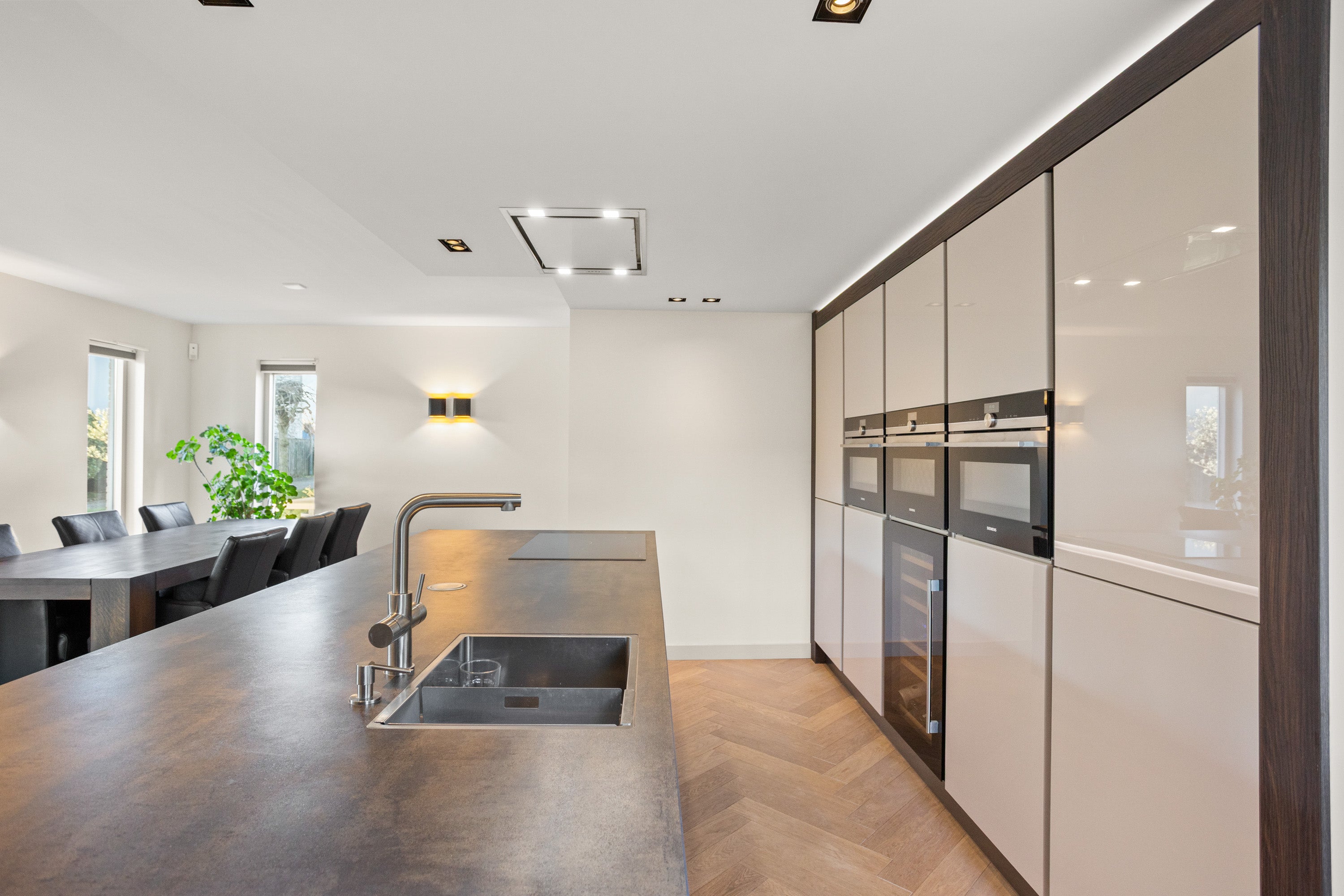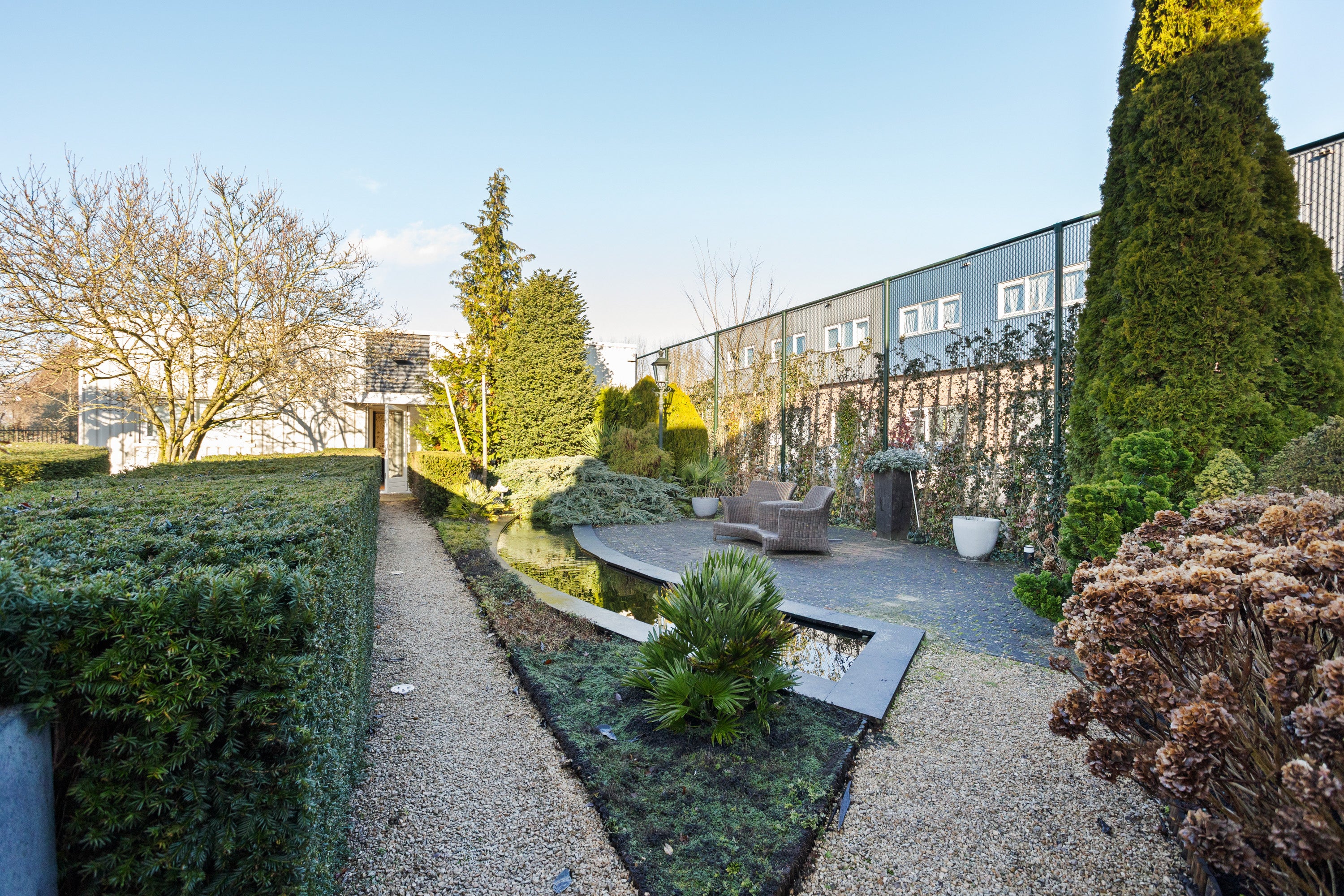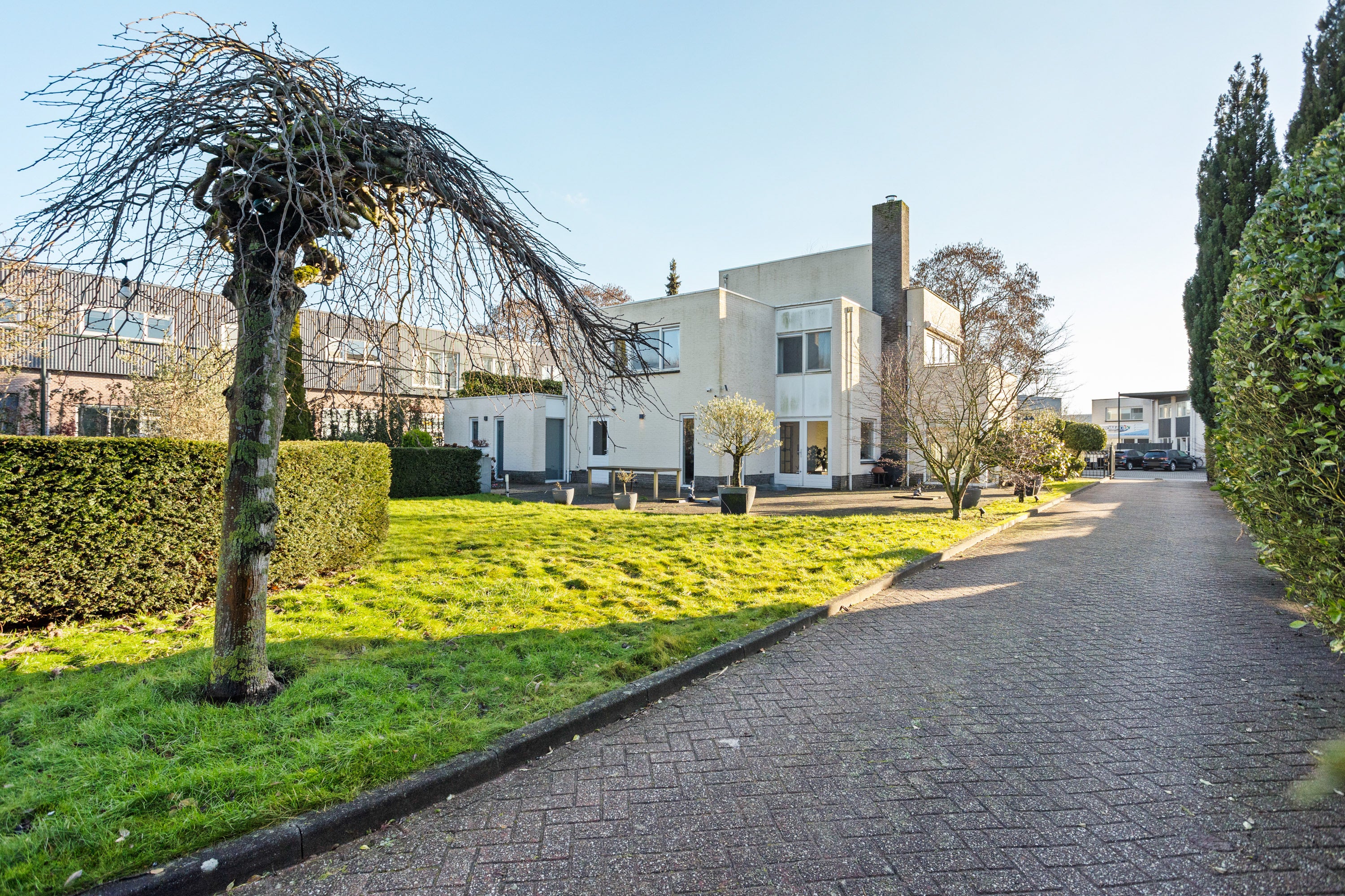 Deze unieke woon- en werklocatie is gelegen op een afgesloten privé-kavel van 1.525 m² en herbergt een vrijstaande woning van 224 m² naast een zelfstandig bedrijfspand van 208 m². De woning biedt volledige privacy en is ideaal voor het combineren van wonen en werken. De royale woonkamer met vloerverwarming en open keuken is voorzien van hoogwaardige apparatuur en biedt directe toegang tot de fraai aangelegde tuin met meerdere terrassen.
