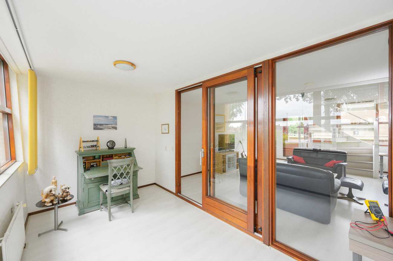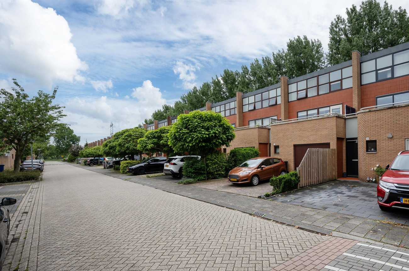 Dit riant herenhuis met inpandige garage ligt in een rustige straat in de Bloemenbuurt in Almere Buiten. Met een woonoppervlakte van 159 m² biedt de woning veel ruimte. De zonnige achtertuin ligt op het zuidwesten en er is een dakterras aan de voorkant waar u heerlijk kunt ontspannen. Parkeren is mogelijk voor twee auto’s op eigen terrein. De omgeving is kindvriendelijk met scholen, kinderopvang, een gezondheidscentrum en sportfaciliteiten in de nabijheid. De indeling omvat een hal met toegang tot de woonkamer, toilet en garage, die omgebouwd kan worden tot slaapkamer. De lichte woonkamer beschikt over een laminaatvloer, en de keuken is uitgerust met moderne apparatuur. De eerste etage heeft een tweede woonkamer en serrekamer, en de tweede etage biedt twee slaapkamers en een badkamer met bad en douche.