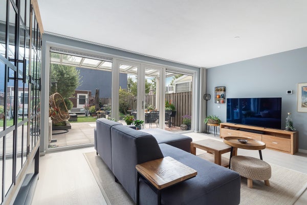 Zodra je binnenstapt ervaar je de fijne lichtinval en de praktische indeling. De ruime, lichte woonkamer vormt het hart van het huis: een heerlijke plek om te ontspannen, samen te eten of rustig te werken. De open verbinding met de tuin zorgt voor een vrij en ruimtelijk gevoel, het hele jaar door.