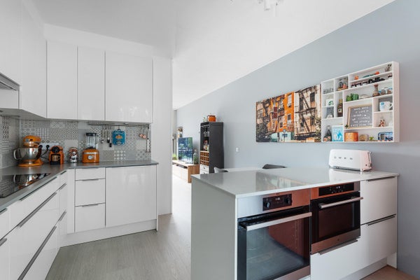 Aan de voorzijde ligt de moderne leefkeuken met stijlvol schiereiland en inbouwapparatuur. Een plek waar koken vanzelf gezellig wordt. Hier ontstaan lange gesprekken, lekkere ontbijtjes en avonden met vrienden.
