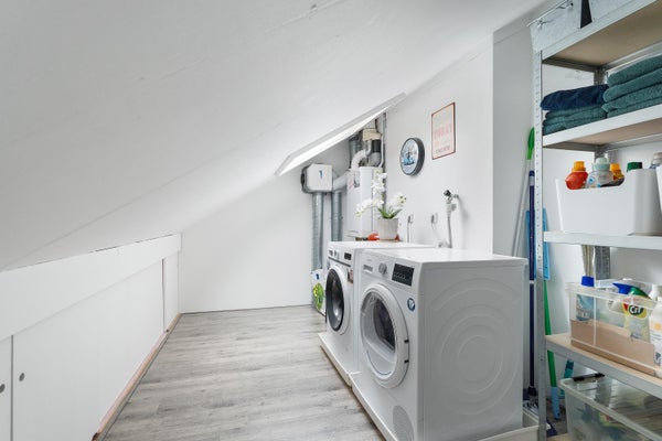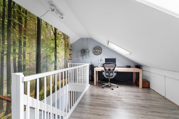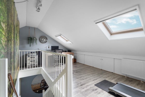 The three comfortable bedrooms are bright and easy to arrange, while the attic offers the possibility to create a fourth bedroom (currently used as a home office or hobby space).
