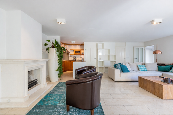 • Royale, lichte woonkamer met speelse indeling en sfeervolle openhaard
