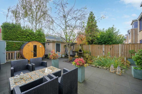 Deze prachtige gezinswoning biedt een unieke kans om te wonen met een royale tuingerichte woonkamer die openslaande deuren naar de grote tuin heeft. Gelegen op een perceel van 182 m², met 130 m² woonoppervlak en 115 m² tuin, is deze woning in 1999 gebouwd en volledig geïsoleerd met stadsverwarming en zonnepanelen. De indeling op de begane grond omvat een entree, een ruime woonkamer met een sfeervolle haard, en een moderne keuken met hoogwaardige inbouwapparatuur. Op de eerste verdieping zijn drie slaapkamers en een badkamer met ligbad en douchecabine. De zolder biedt extra opbergruimte. De tuin, gelegen op het zuidoosten, is onderhoudsarm en heeft een vijver. De woning ligt bovendien dichtbij diverse voorzieningen in een kindvriendelijke wijk. Een uitstekende keuze voor wie ruimte en duurzaamheid zoekt.
