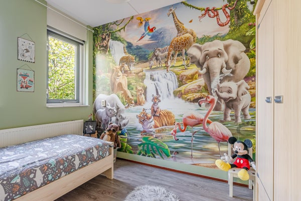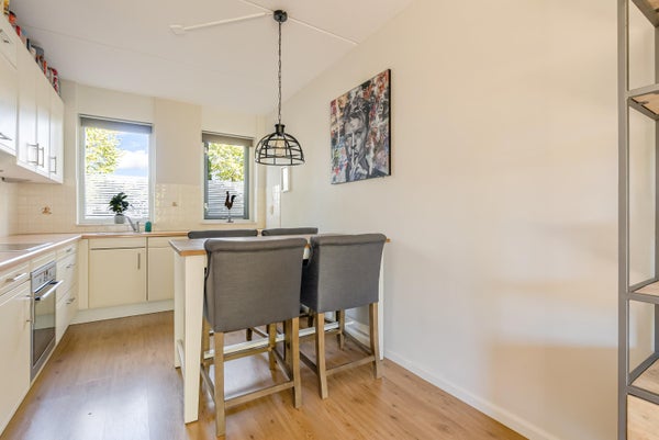 Deze ruime eengezinswoning aan de Albrecht Dürerweg 50 in Tussen de Vaarten biedt maar liefst 6 slaapkamers en een zonnige tuin op het zuidwesten. Met een woonoppervlak van 118 m² en een perceel van 140 m², is het ideaal voor gezinnen of voor iedereen die extra ruimte zoekt. Het huis heeft een ruime woonkamer met een schuifpui naar de achtertuin, een keuken met inbouwapparatuur en een aparte wasruimte. De eerste verdieping bevat drie slaapkamers en een badkamer, terwijl de tweede verdieping nog eens drie slaapkamers herbergt. De locatie is gunstig, nabij scholen, winkels en openbaar vervoer. Met goede isolatie en stadsverwarming is het energiezuinig. Geniet van de tuin met berging en achterom, perfect voor de middag- en avondzon.