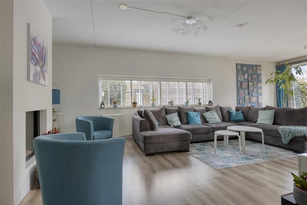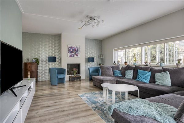 Royale woonkamer vol licht, met directe toegang tot de tuin;