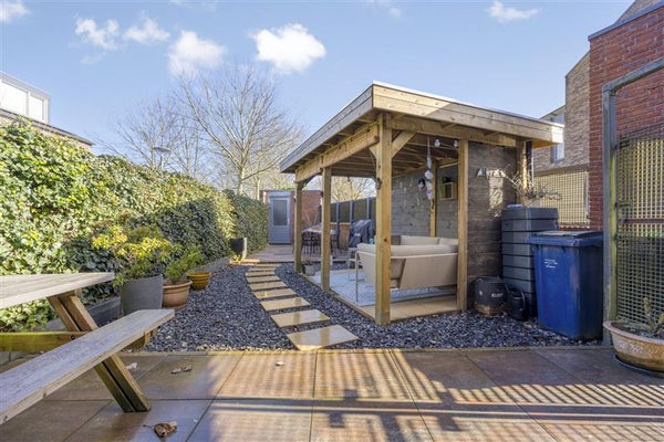 En die tuin? Die is fantastisch! Kinderen kunnen hier bijvoorbeeld eindeloos spelen, terwijl jij ontspant onder de overkapping, met een goed boek of een glas wijn. De tuin is zo ingedeeld dat je zowel schaduw als zon hebt – ideaal voor elk seizoen. Voor al je tuinspullen of bijvoorbeeld de fietsen is er een praktische berging aanwezig, ideaal!