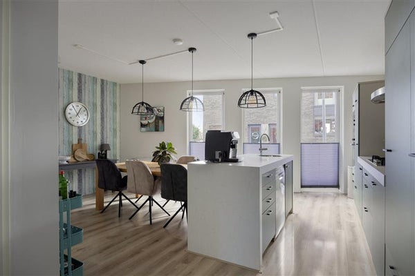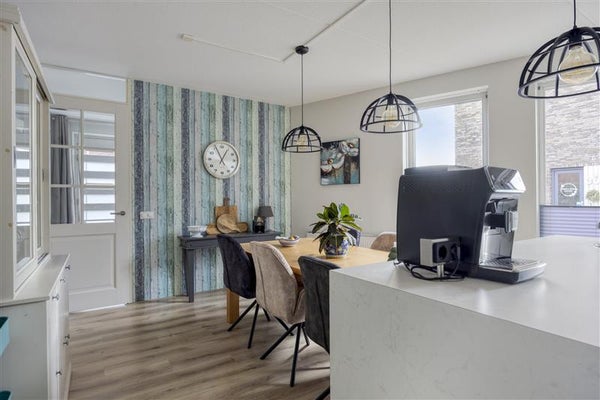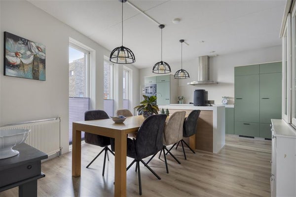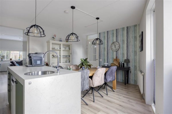 Zodra je de deur opent, voel je direct de warme sfeer van dit goed onderhouden huis. De hal verwelkomt je met een moderne vloer en een fijne indeling: hier vind je de trap naar boven, het moderne toilet met urinoir en deuren die toegang bieden tot de keuken en woonkamer. Loop je door naar de woonkeuken, dan zul je direct oog krijgen voor het strak vormgegeven spoeleiland. Met ruimte voor een royale eettafel is dit dé centrale plek van het huis, of je nou met de kinderen een spelletje speelt, uitgebreid kookt of een borrelavond organiseert. Het is een ruimte waar leven en samenzijn écht tot hun recht komen!