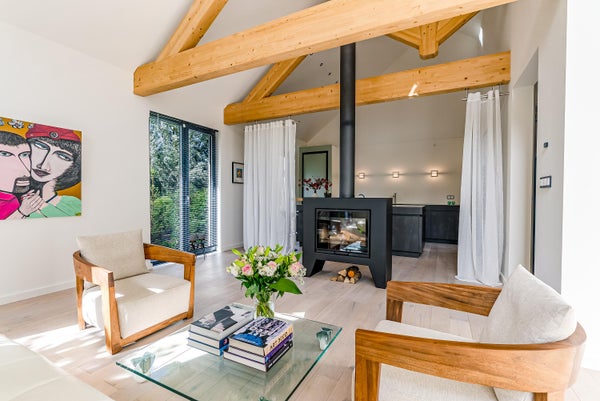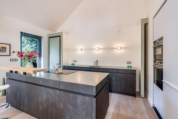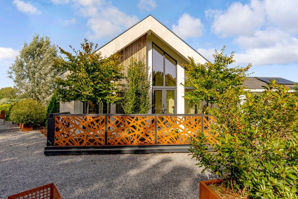 Op een bijzondere locatie in Almere Oosterwold vindt u deze moderne vrijstaande woning, ontworpen door architect Oebele Hoekstra. De woning heeft een speelse indeling en een hoge afwerkingsniveau, met een prachtig aangelegde tuin rondom. De ruime hal leidt naar de royale woonkamer, waar een tweezijdige houtkachel zorgt voor sfeer. De Duitse kwaliteitskeuken met luxe RVS aanrechtblad is een blikvanger, ideal voor het ontvangen van gasten. De woning heeft drie slaapkamers, een moderne badkamer met inloopdouche, en een praktische wasruimte. Technisch is de woning goed uitgerust met kunststof ramen, vloerverwarming en een lucht/water warmtepomp. De tuin biedt veel privacy en aansluitingen van de woonkamer en keuken maken de overgang tussen binnen en buiten naadloos.