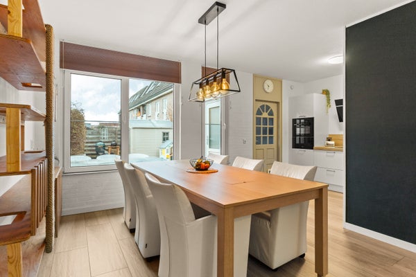 Instapklaar, duurzaam en tot in detail gemoderniseerd, dat is Jaagmeent 22 in Almere Haven. Dit woonhuis is volledig gemoderniseerd en biedt een rustige woonomgeving met alle voorzieningen dichtbij. De entree leidt naar een hal met vernieuwde meterkast en modern toilet. De sfeervolle woonkamer heeft een keramische parketvloer met vloerverwarming, een praktische voorraadkast en een royale eethoek. De moderne keuken is uitgerust met hoogwaardige inbouwapparatuur. Op de eerste verdieping zijn drie slaapkamers en een moderne badkamer met regendouche. De zonnige achtertuin, gelegen op het zuidwesten, is onderhoudsvriendelijk. Met energielabel A en diverse duurzame voorzieningen, biedt deze woning comfort en toekomstbestendigheid.