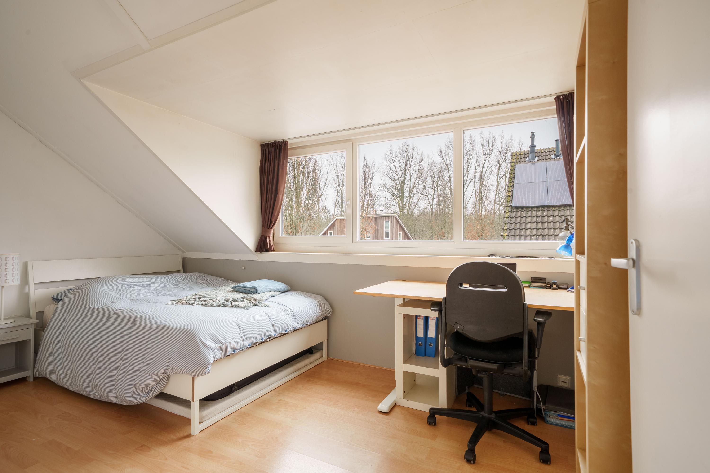 Aan de rand van de wijk De Velden in Almere Haven staat deze ruime half vrijstaande woning met inpandige garage, gelegen op een perceel van 321 m². Dit goed onderhouden gezinshuis biedt vijf slaapkamers en veel bergruimte, omgeven door een mooie tuin. De woning heeft een grote living van 11,71 meter lang en 6,33 meter breed, met een sfeervolle woonkamer en openslaande deuren naar de achtertuin. De open keuken is voorzien van een Smeg fornuis en de eetkamer bevindt zich aan de straatzijde. Op de eerste verdieping zijn vier slaapkamers en een complete badkamer. De zolderverdieping omvat een vijfde slaapkamer en een wasruimte. De tuin biedt privacy en ruimte voor kinderen. Scholen, een supermarkt en natuurgebieden zijn dichtbij.