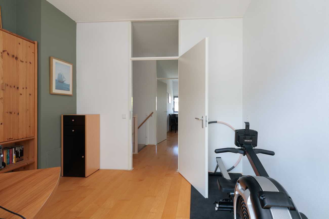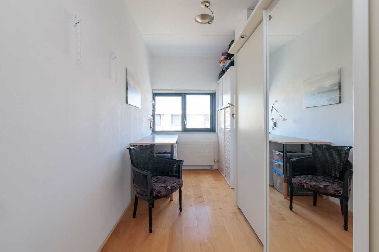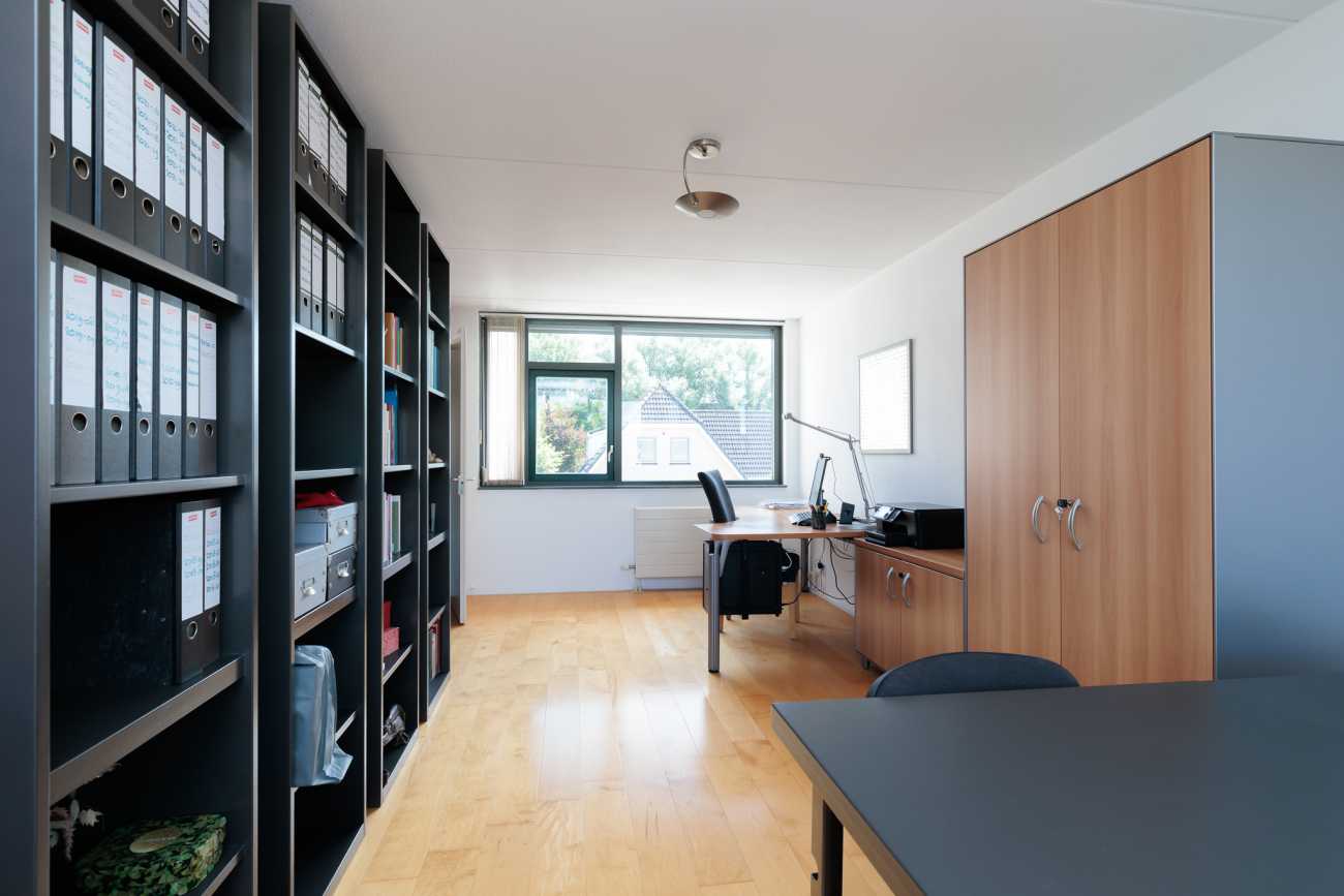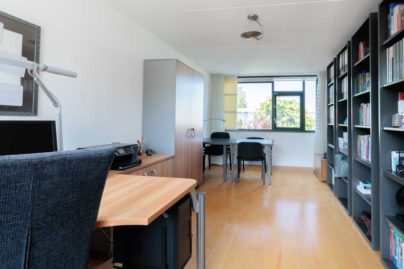 In de gewilde Literatuurwijk in Almere Stad bevindt zich deze goed onderhouden en energiezuinige twee-onder-een-kapwoning van ca. 158 m². Bij binnenkomst komt u in een ruime hal met garderobe en toilet, die leidt naar een lichte woonkamer met grote raampartijen en kunststof schuifpui naar de tuin. De luxe Siematic keuken heeft diverse inbouwapparatuur. De omgebouwde garage fungeert als moderne kantoor/praktijkruimte met eigen entree en een praktische berging. Op de eerste verdieping zijn vier ruime slaapkamers en een volledig ingerichte badkamer met inloopdouche. Buiten vindt u een onderhoudsvriendelijke tuin met een vijver en terras. Daarnaast is er parkeergelegenheid op eigen terrein en is de woning voorzien van zonnepanelen.