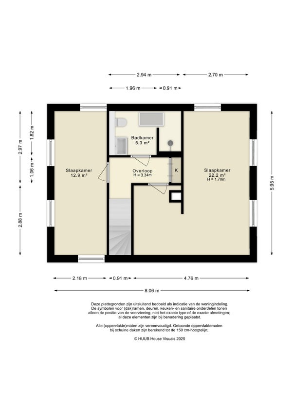 - De tussenwoning heeft een woonoppervlakte van 96 m² en beschikt over 3 kamers, waarvan 2 slaapkamers;
