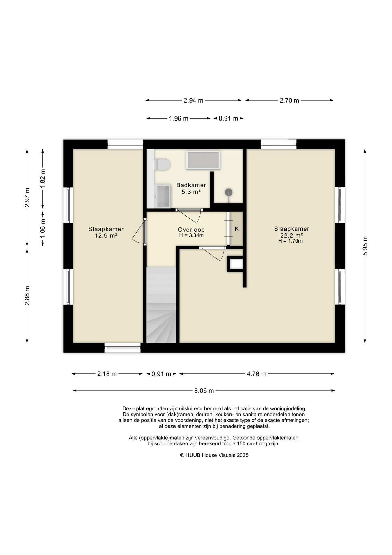 - De tussenwoning heeft een woonoppervlakte van 96 m² en beschikt over 3 kamers, waarvan 2 slaapkamers;