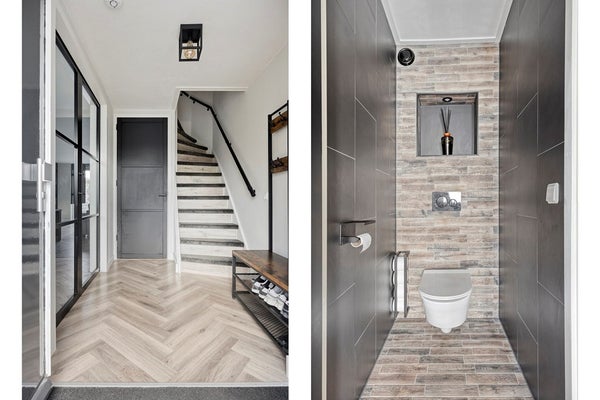 Via de entree betreedt u de woning en komt u in de hal met meterkast (compleet vernieuwd) en toegang tot de ruime, lichte woonkamer. De begane grond is voorzien van comfortabele vloerverwarming en een hoogwaardige laminaatvloer die doorloopt in een strakke, moderne afwerking.