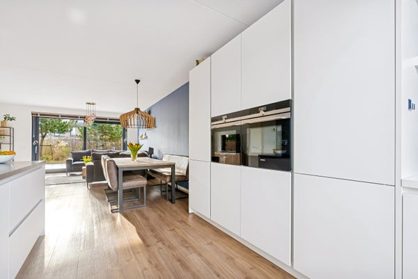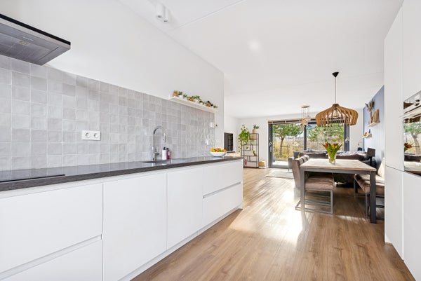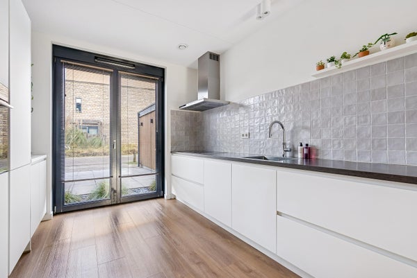 Deze ruime tussenwoning in Almere Duin biedt de perfecte combinatie van wonen in de natuur en de gemakken van de stad. De woning, gebouwd in 2017 en met een woonoppervlakte van 148 m², beschikt over een lichte woonkamer, een gezellige open keuken, maar liefst vijf slaapkamers en een zonnige tuin met een groot dakterras. Het energielabel A garandeert duurzaam wonen met HR+++ glas, drie zonnepanelen en stadsverwarming. Op de begane grond is er vloerverwarming en een praktische indeling. De moderne keuken is van alle gemakken voorzien. Op de eerste verdieping zijn drie slaapkamers en een luxe badkamer. Een geïsoleerde tweede verdieping biedt nog twee extra kamers. De locatie is ideaal met natuur, strand en voorzieningen dichtbij, en gemakkelijke toegang naar Amsterdam.