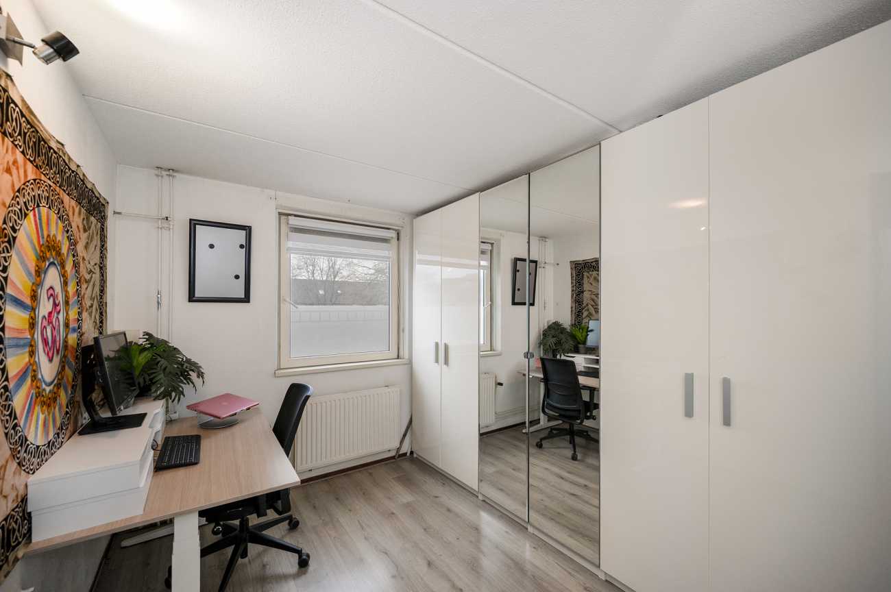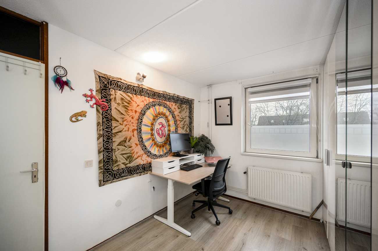 Deze eengezinswoning ligt aan een groen speelplantsoen in de Waterwijk en beschikt over parkeergelegenheid voor twee auto’s op eigen terrein. De woning heeft een uitbouw van 3,5 meter op de begane grond, kunststof dakkapellen en een achtertuin op het noordwesten. De entree leidt naar de hal met een modern toilet en toegang tot een riante woonkamer. De lichtinval is uitstekend door de grote schuifpui. De keuken is uitgerust met inbouwapparatuur. Op de eerste verdieping zijn twee ruime slaapkamers, waarvan de hoofdslaapkamer aan de achterzijde ligt, en een moderne badkamer. De tweede verdieping biedt een praktische wasruimte en een derde slaapkamer. De onderhoudsvriendelijke achtertuin heeft een ruime berging. De woning ligt vlakbij voorzieningen en heeft energielabel A.