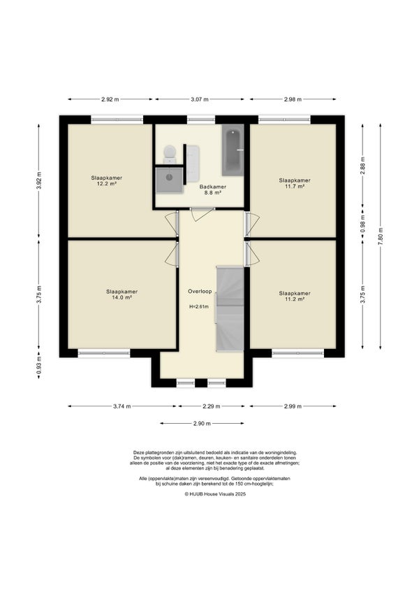 • De tussenwoning heeft een woonoppervlakte van 194 m² en beschikt over 8 kamers, waarvan 6 slaapkamers;