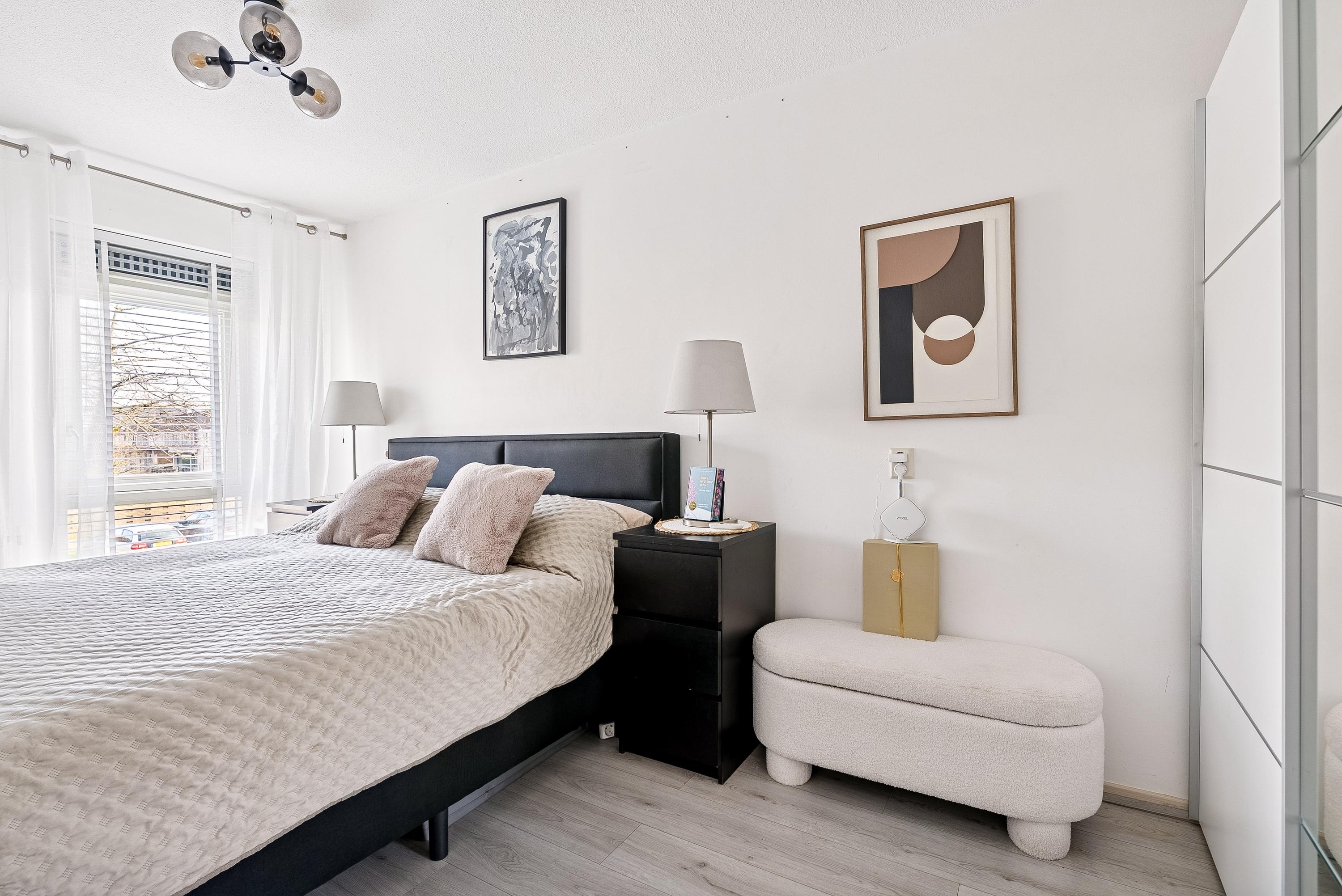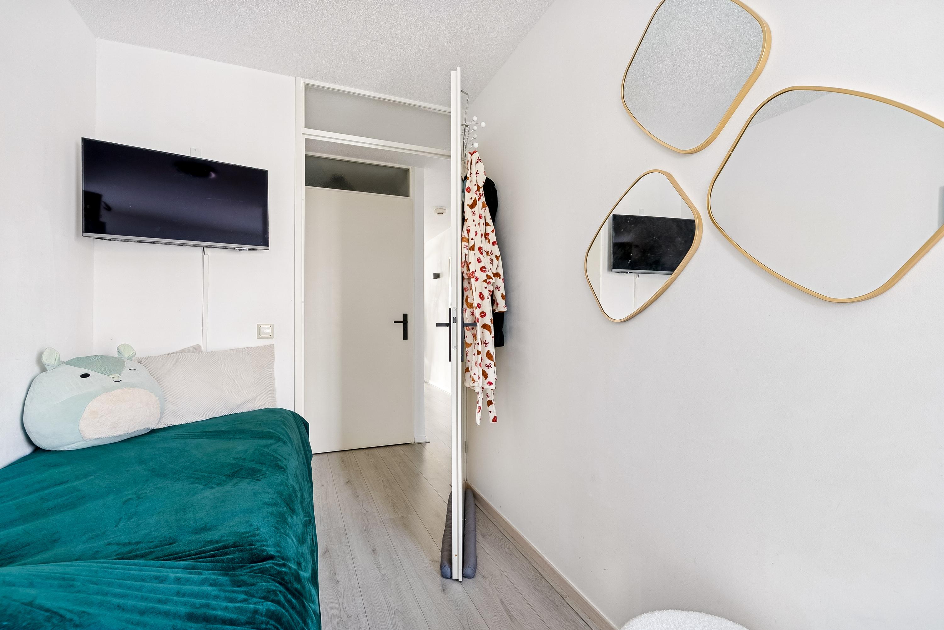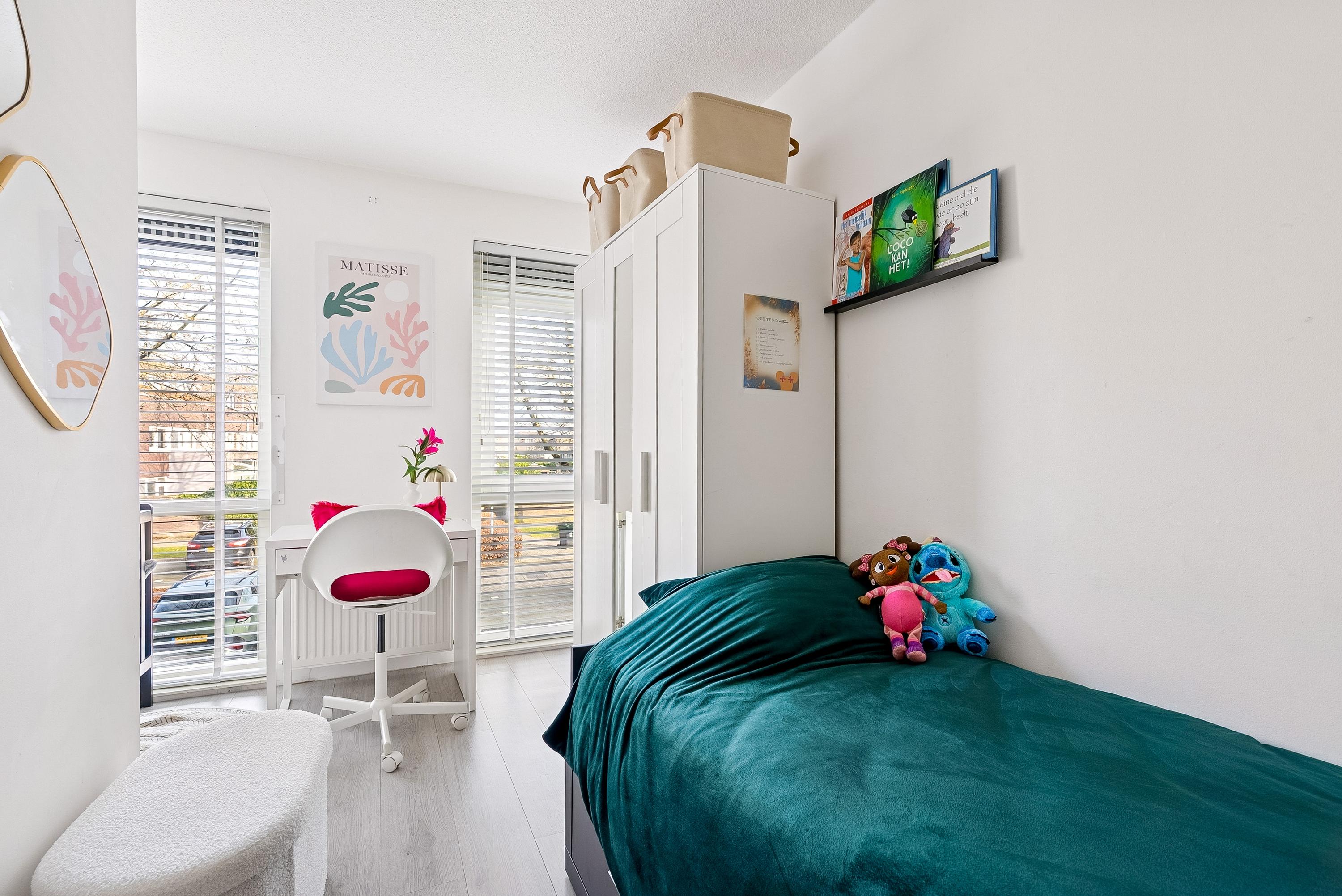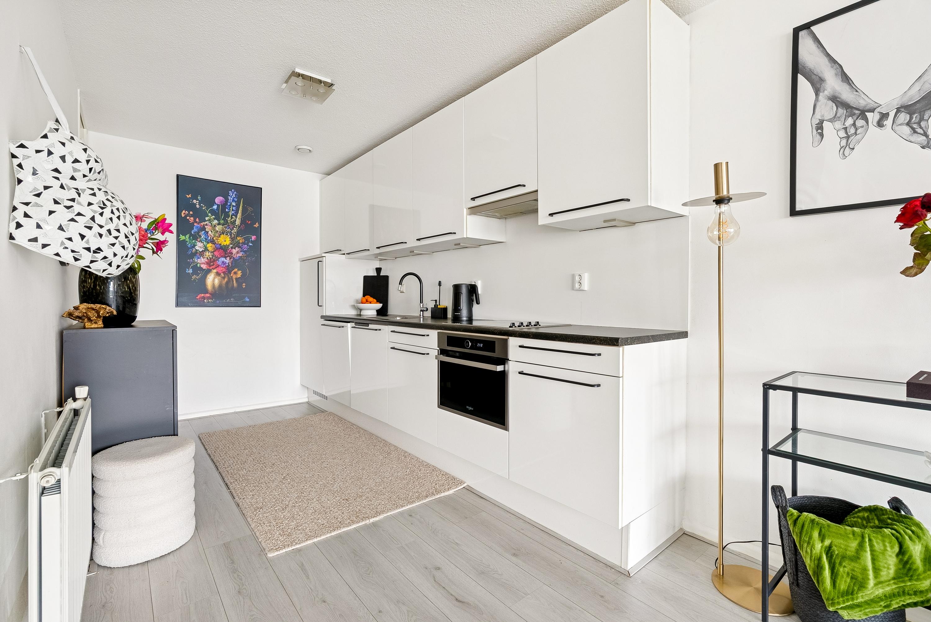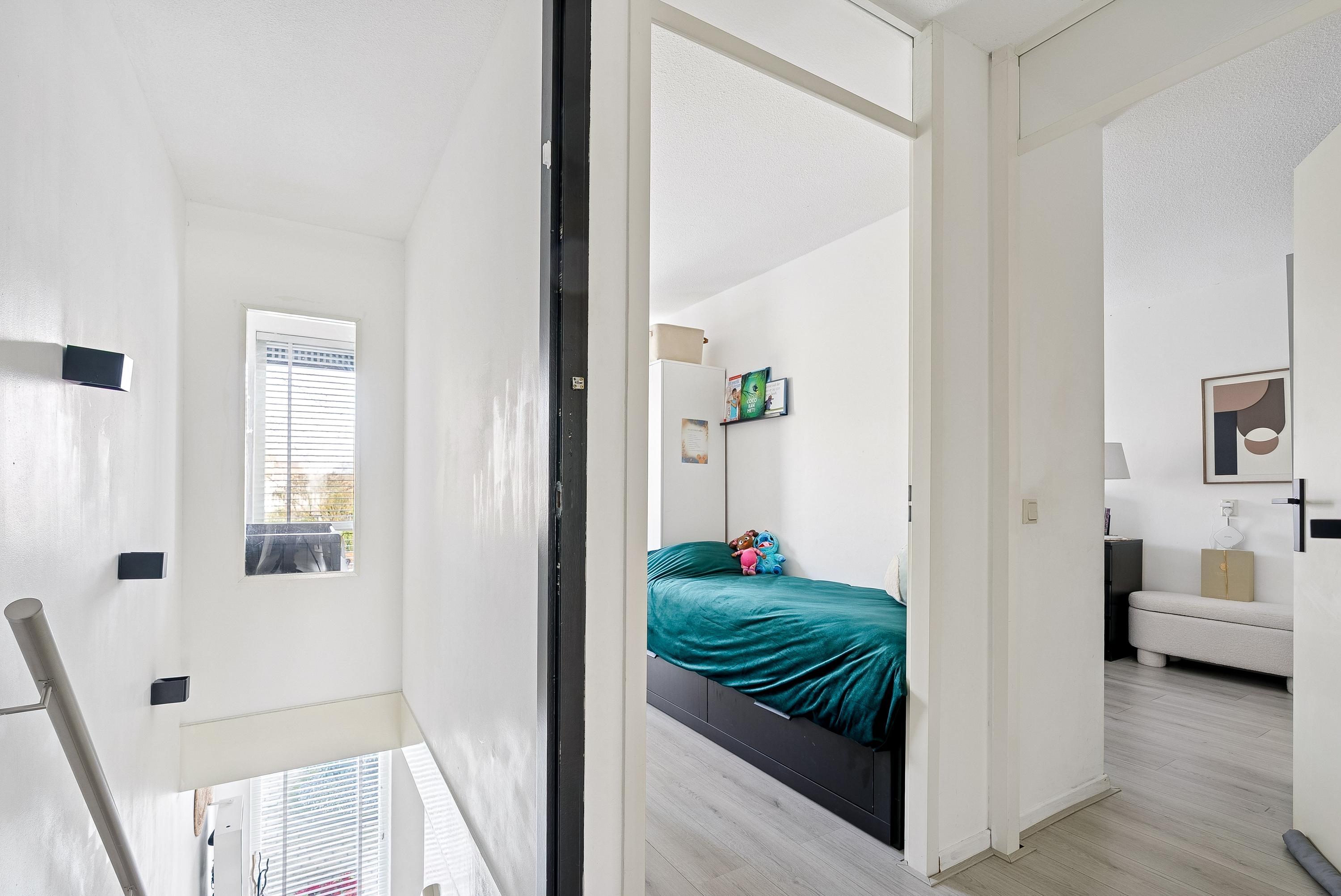 De woning ligt in een rustige, kindvriendelijke buurt dichtbij scholen, winkels en openbaar vervoer. De indeling op de eerste verdieping bestaat uit een entree met toegang tot de berging, twee lichte slaapkamers, een halfhoog betegeld toilet en de badkamer. De moderne keuken is uitgerust met diverse inbouwapparatuur. Daarnaast is er volop gratis parkeergelegenheid voor de deur en een goed functionerende VvE.