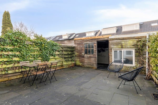 Through the French doors at the rear, you reach the sunny, deep west-facing garden. Here you can enjoy outdoor living well into the evening. The garden features a convenient back entrance and a spacious wooden shed with electricity — ideal for bicycles, hobbies, and extra storage.