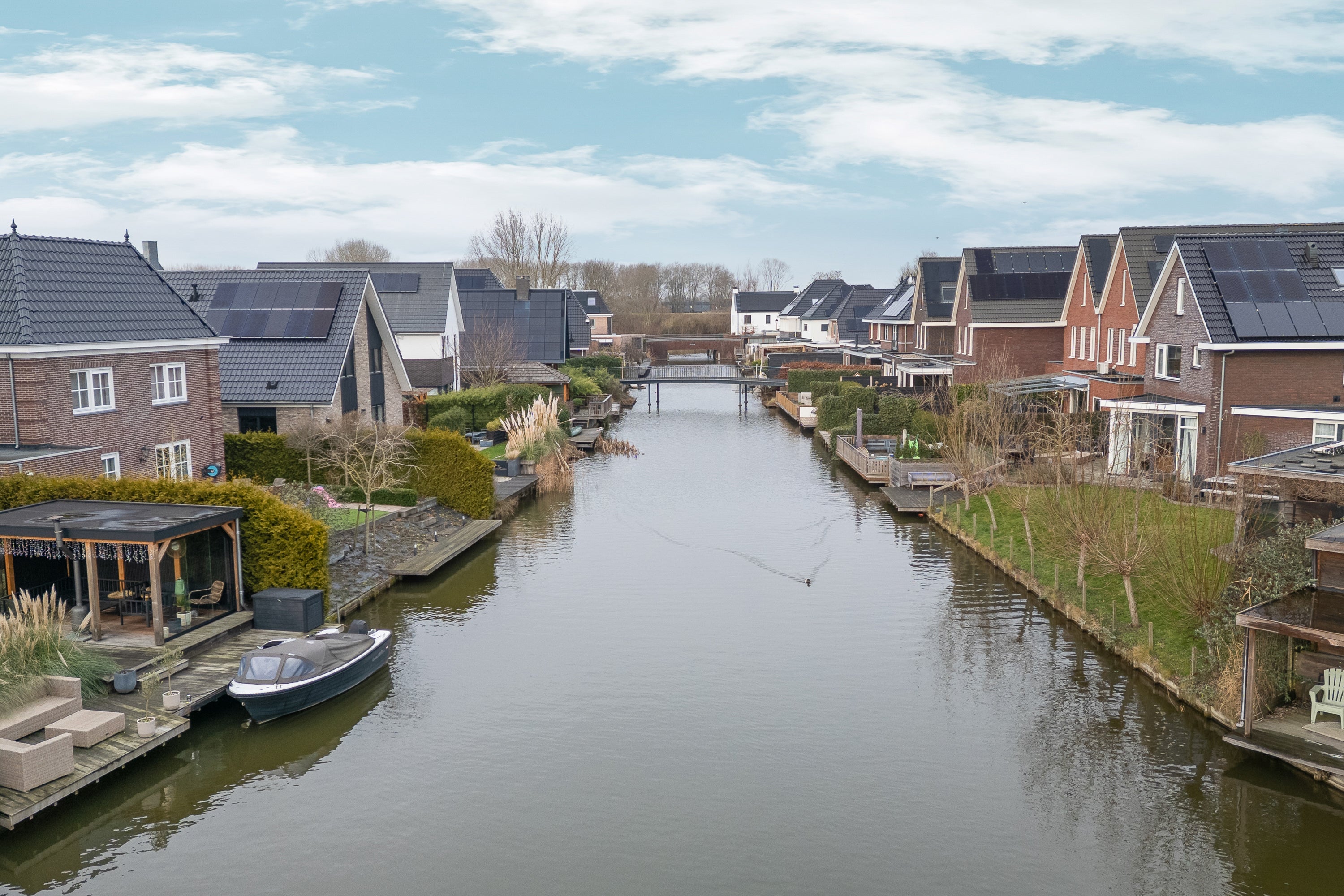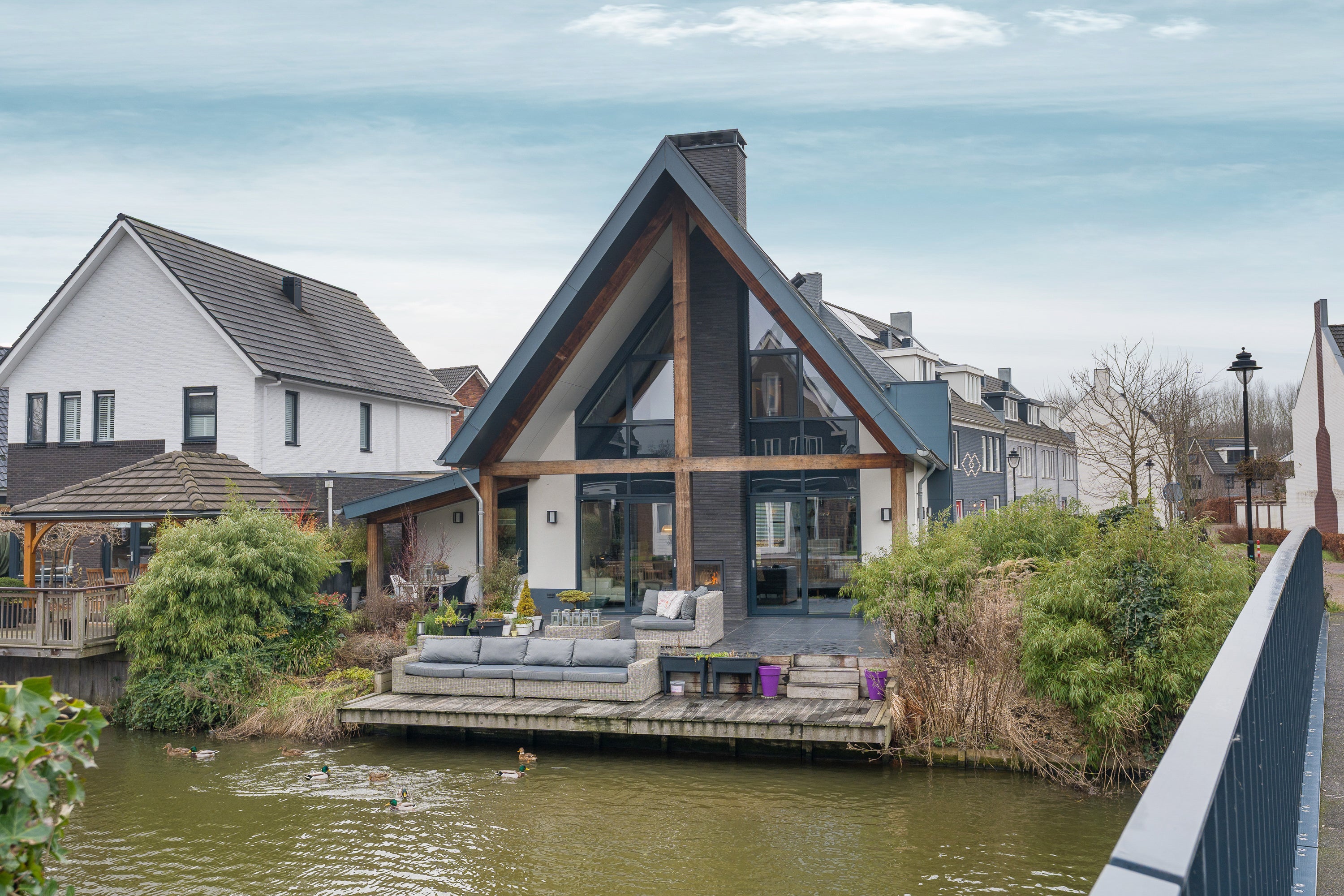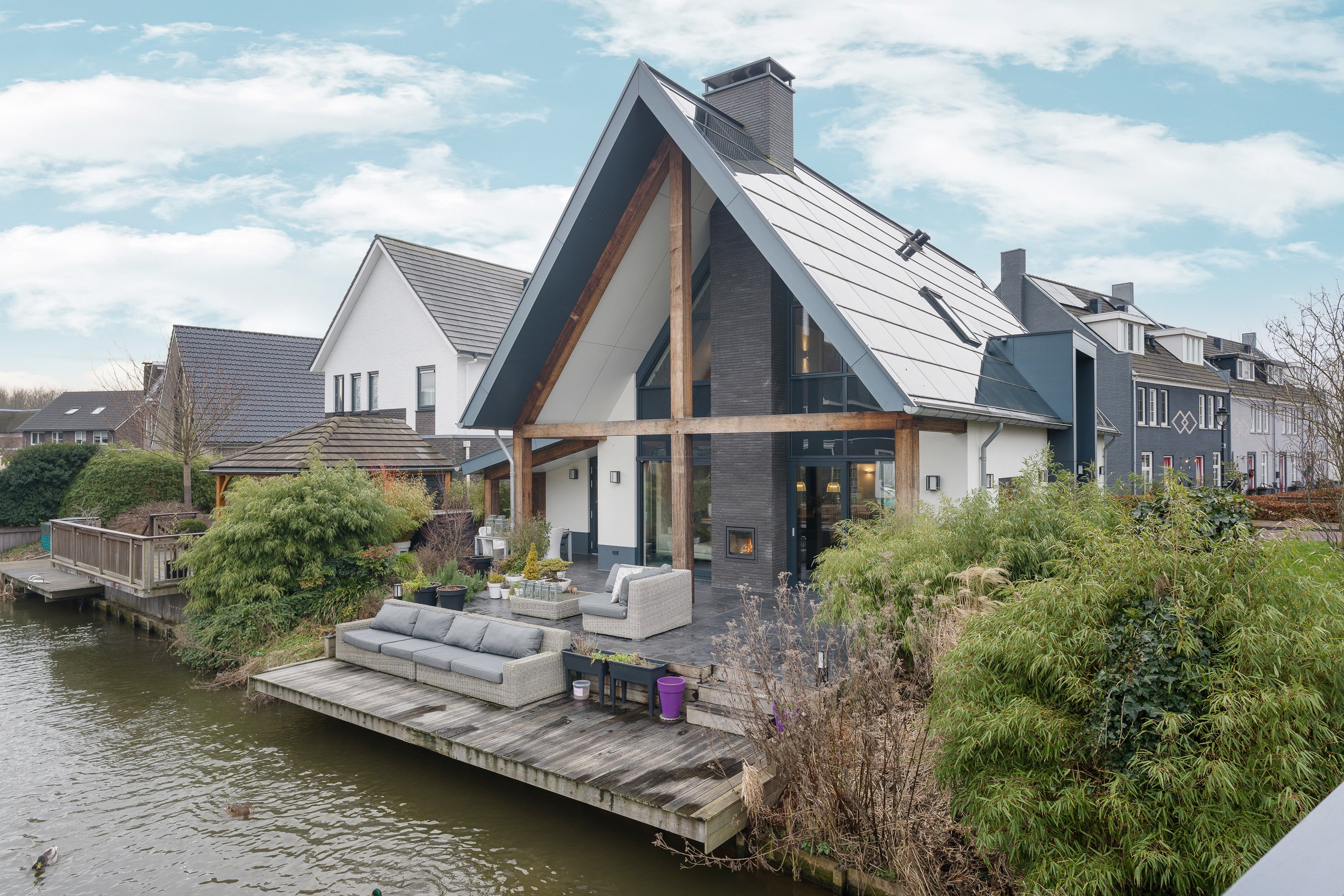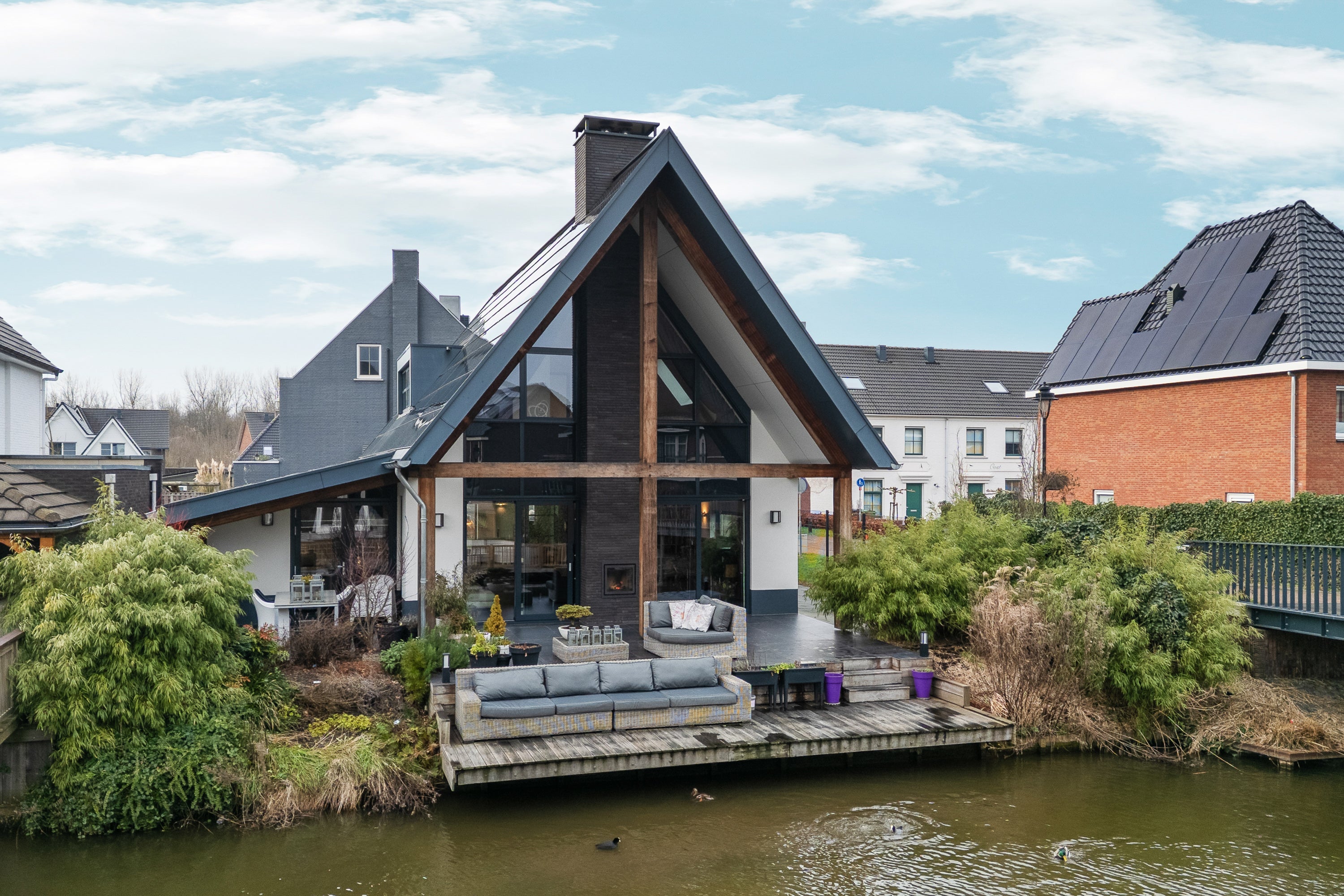 In Nobelhorst vindt u een unieke, vrijstaande villa aan vaarwater. Dit architectonisch ontwerp is een perfecte combinatie van luxe, ruimte en duurzaamheid. De woning, gebouwd in 2021, heeft grote raampartijen en indrukwekkende houten spanten van Bilinga en Padouk. Het biedt heerlijk uitzicht op de tuin en het water, waar uw eigen steiger zich bevindt. De entree verwelkomt u met een stijlvolle hal en een open trap naar de eerste verdieping. Op de begane grond treft u een ruime living met keramische tegels en een Bulthaup keuken met hoogwaardige apparatuur. Ook een slaap-/werkkamer en badkamer bevinden zich hier. De eerste verdieping herbergt drie slaapkamers en een luxe badkamer. De tuin is verzorgd met terrassen en een houthaard, perfect voor gezellige avonden. Met 214 m² woonoppervlakte en talrijke duurzame voorzieningen is deze villa een droom voor liefhebbers van luxe en buitenleven.